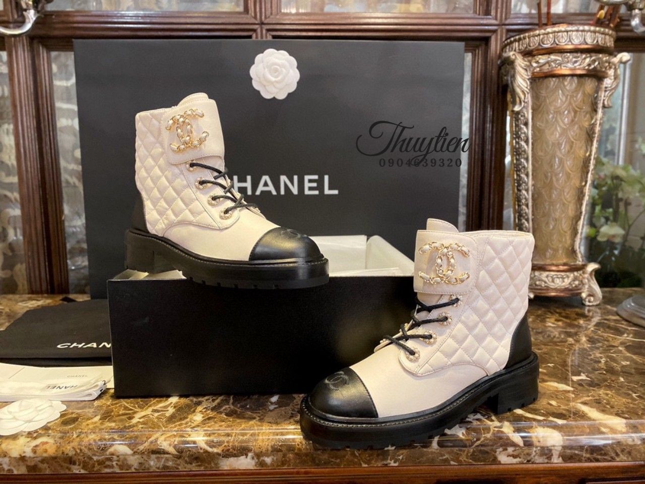 • Giày Bôt - Boot Chanel da da thật Chuẩn Auth 99%