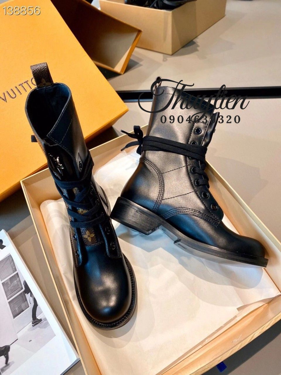 Giày Boot Replica Hiệu Lv Cao Cổ Cột Dây - Chuyên Sỉ Giày Dép Cao Cấp