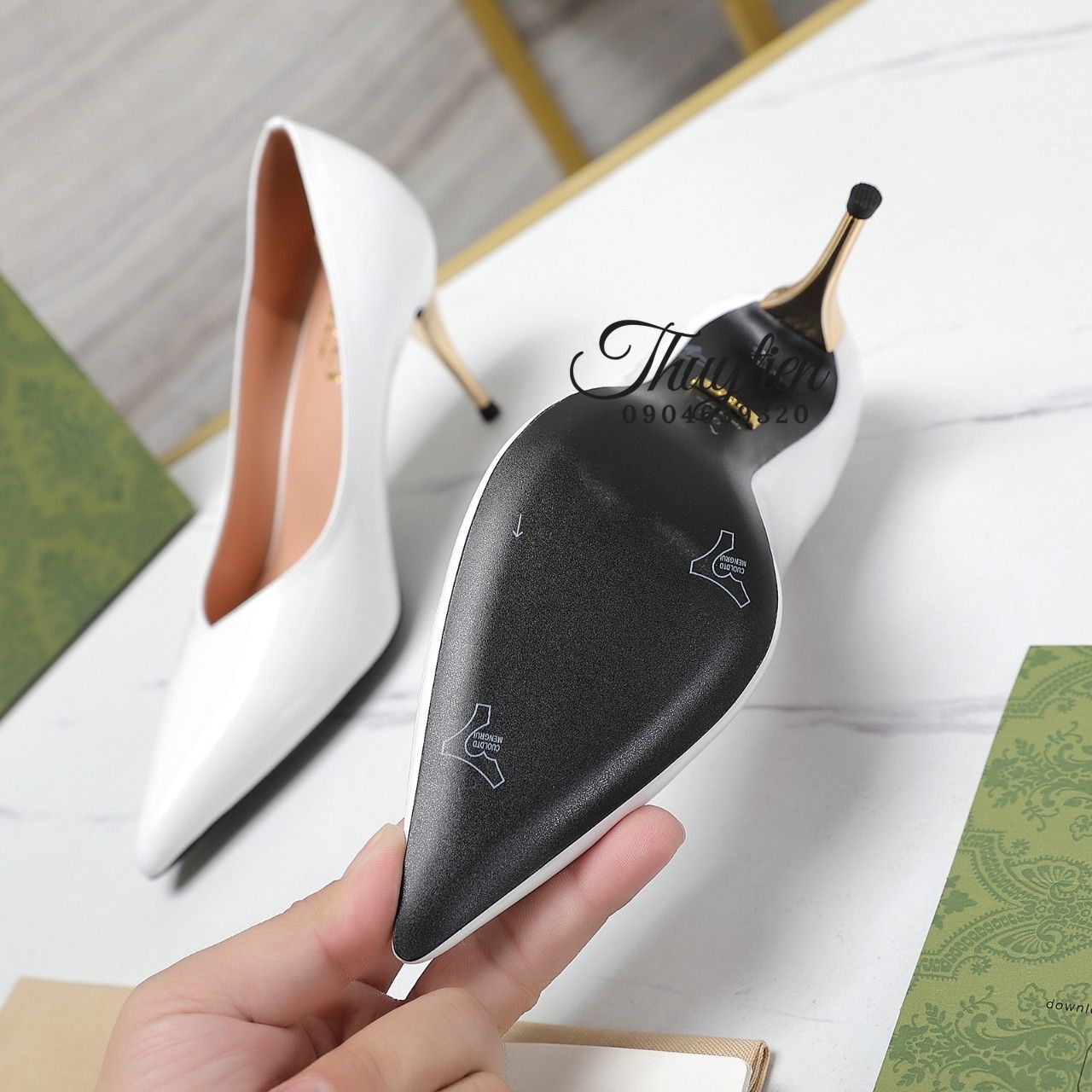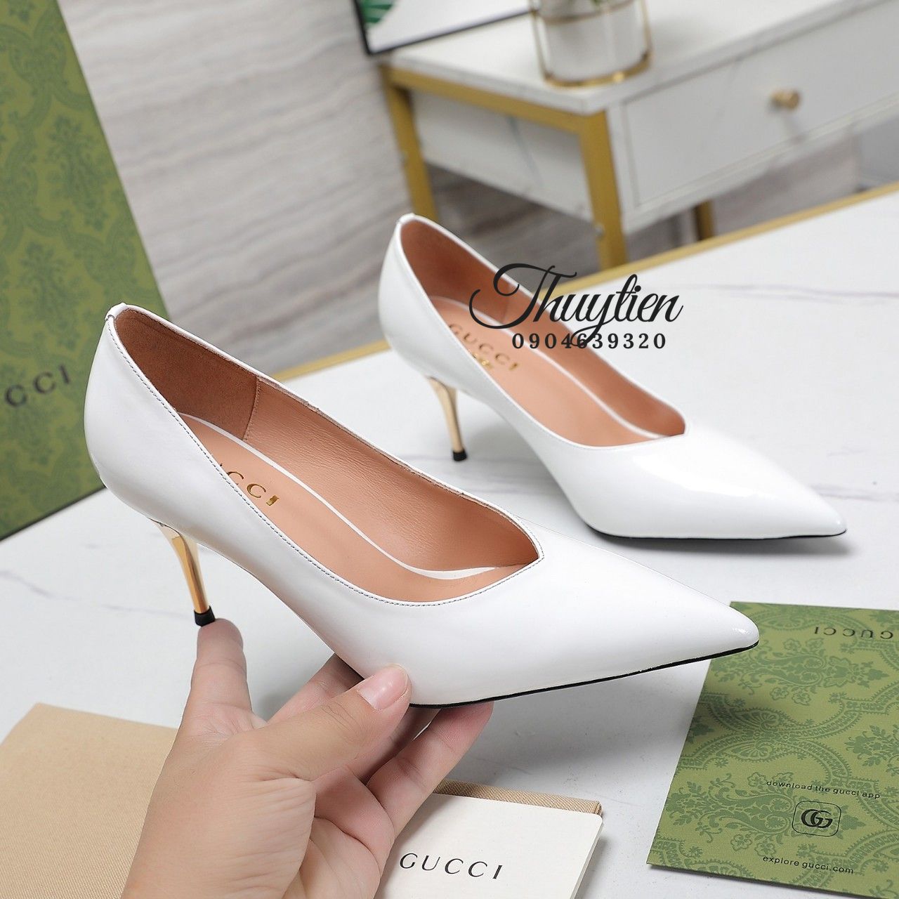 Khẳng định 100% Giày Cao Gót Hàng Hiệu Gucci Màu Trắng Siêu Cấp Vip được nhập từ nhà máy gốc không qua bất kì trung gian nào nên giá thành tốt nhất. Thùy Tiên chính là cầu nối giữa nhà sản xuất và các bạn. Nhiệm vụ của chúng tôi là đem đến một dịch vụ uy tín cùng những sản phẩm chất lượng với giá thành tốt nhất. Hãy tin tưởng và đến với chúng tôi! Vì tên hiệu thuytientuivip đã được khẳng định bằng chất lượng của từng sản phẩm trong suốt nhiều năm qua! Từ vô số những đơn hàng đã giao đi thành công và nhận về rất nhiều những phản hồi yêu mến tích cực của khách hàng. Từ đó chúng tôi ngày càng tự tin giới thiệu những sản phẩm cao cấp nhất đến tay khách hàng.