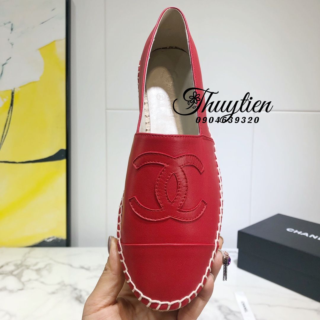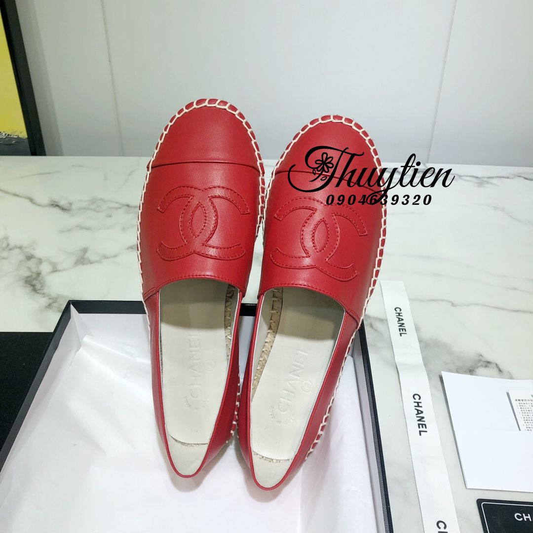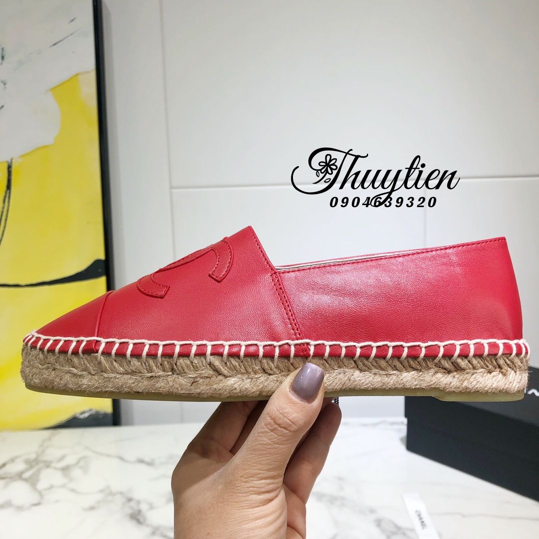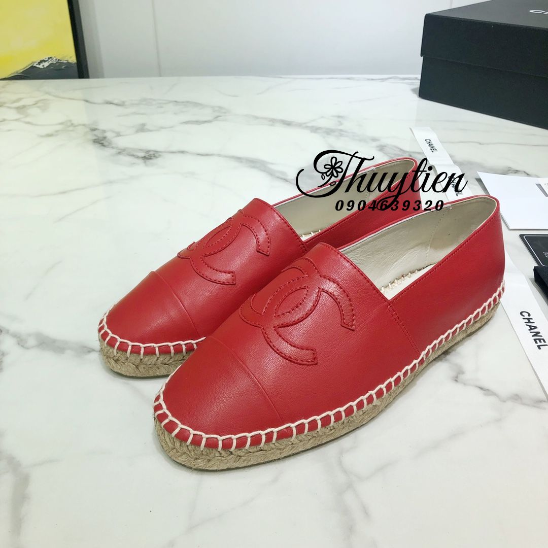 Giày Lười Đế Cói Chanel Hàng Hiệu Luxury Màu Đỏ Shop Giày Siêu Cấp