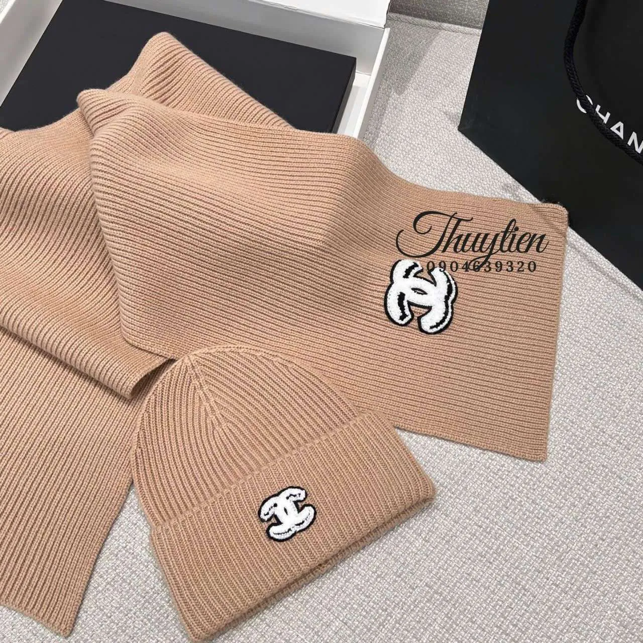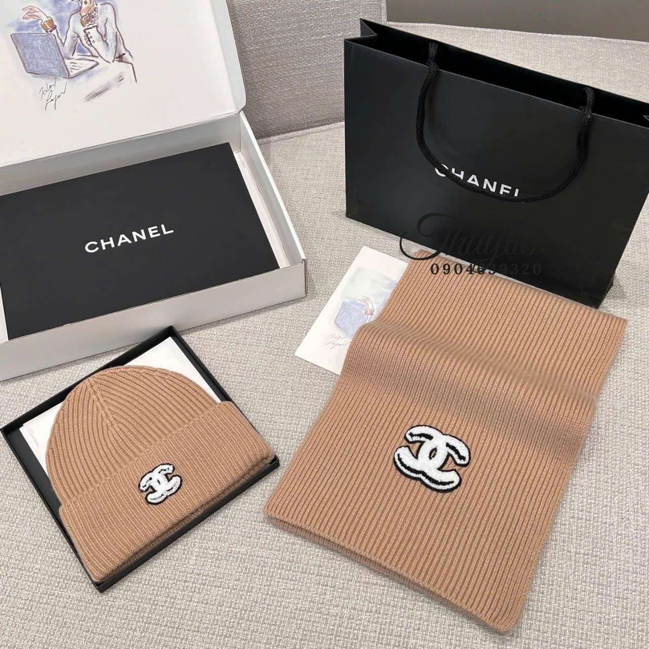 Chất liệu len của mẫu rep 1:1 được dệt kỹ, không xù lông và tạo cảm giác mềm mại khi tiếp xúc với da. Cấu trúc dệt chắc chắn giúp form mũ đứng dáng, trong khi khăn len có độ rủ nhẹ nhàng. Logo Chanel được thêu sắc nét, đều và nổi bật, tăng tính sang trọng cho sản phẩm. Đây là lựa chọn phù hợp để sử dụng hằng ngày hoặc làm quà tặng.