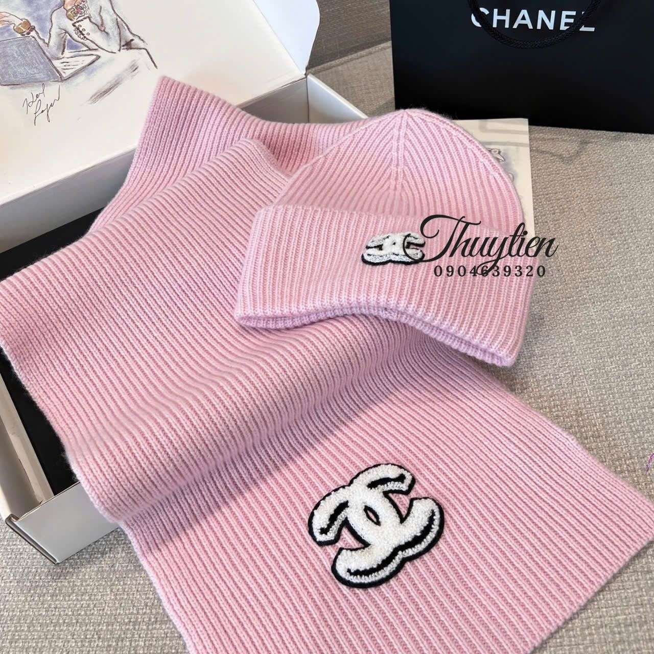 Set khăn và mũ len Chanel mang đến sự kết hợp hoàn hảo giữa tính ứng dụng và phong cách thời trang. Chất len mềm mịn, co giãn tốt và giữ ấm hiệu quả giúp người dùng thoải mái khi diện trong mùa lạnh. Màu hồng và be tạo cảm giác hài hòa, tạo vẻ đẹp dịu dàng nhưng vẫn nổi bật. Thiết kế tinh tế khiến nhiều khách của Thùy Tiên yêu thích lựa chọn mẫu này.