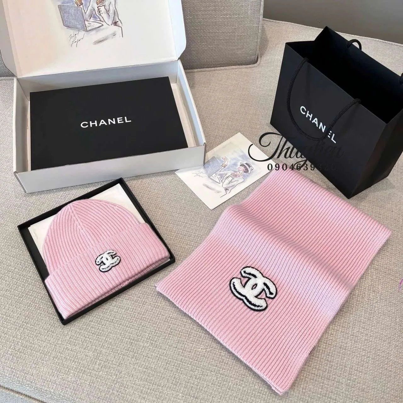 Sản phẩm thu hút bởi sự tiện lợi khi vừa ấm áp lại vừa tôn phong cách thời trang mùa đông. Hai màu hồng và be dễ phối đồ, giúp tổng thể trang phục trở nên mềm mại và cuốn hút hơn. Thiết kế mang đậm tinh thần Chanel, đơn giản nhưng sang trọng, khiến bộ set luôn nằm trong danh sách bán chạy nhất. Đây là phụ kiện không thể thiếu của những tín đồ yêu sự thanh lịch.