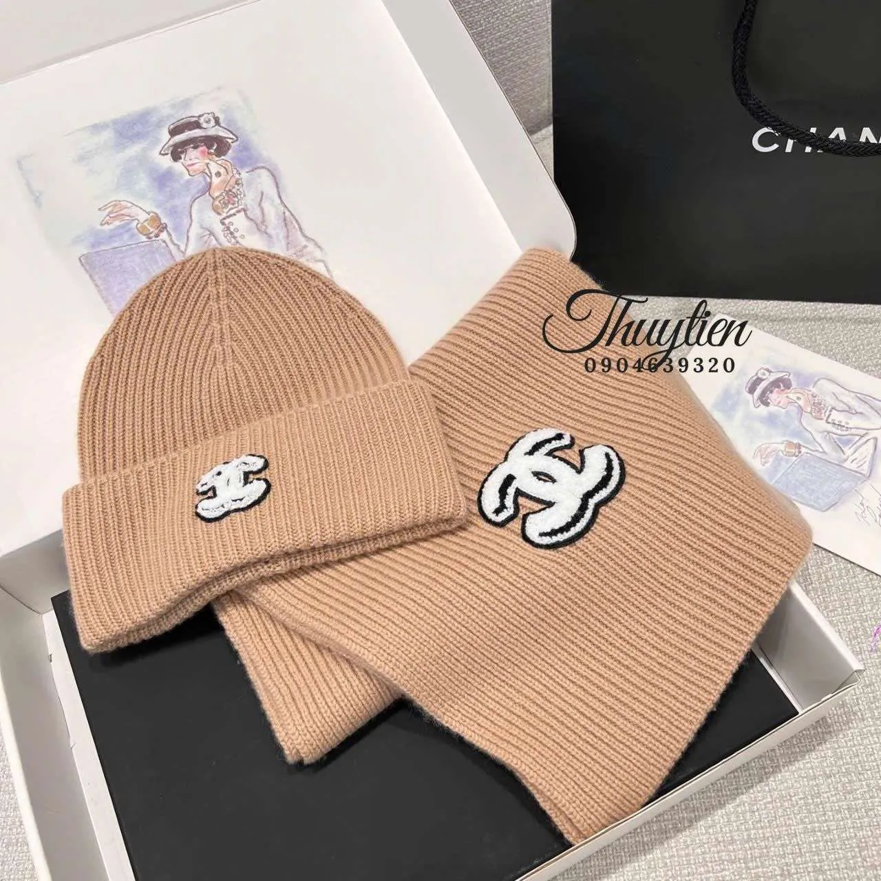 Bộ khăn và mũ len Chanel dễ dàng phối cùng áo khoác dạ, áo len hoặc áo phao cho những ngày lạnh. Tông hồng và be giúp gương mặt sáng hơn, tạo phong thái nữ tính và thanh lịch. Với các outfit trung tính như trắng, kem, nâu nhạt, sản phẩm càng phát huy vẻ đẹp sang trọng. Đây là bộ phụ kiện lý tưởng cho những ai yêu thích phong cách tinh tế và nhẹ nhàng.