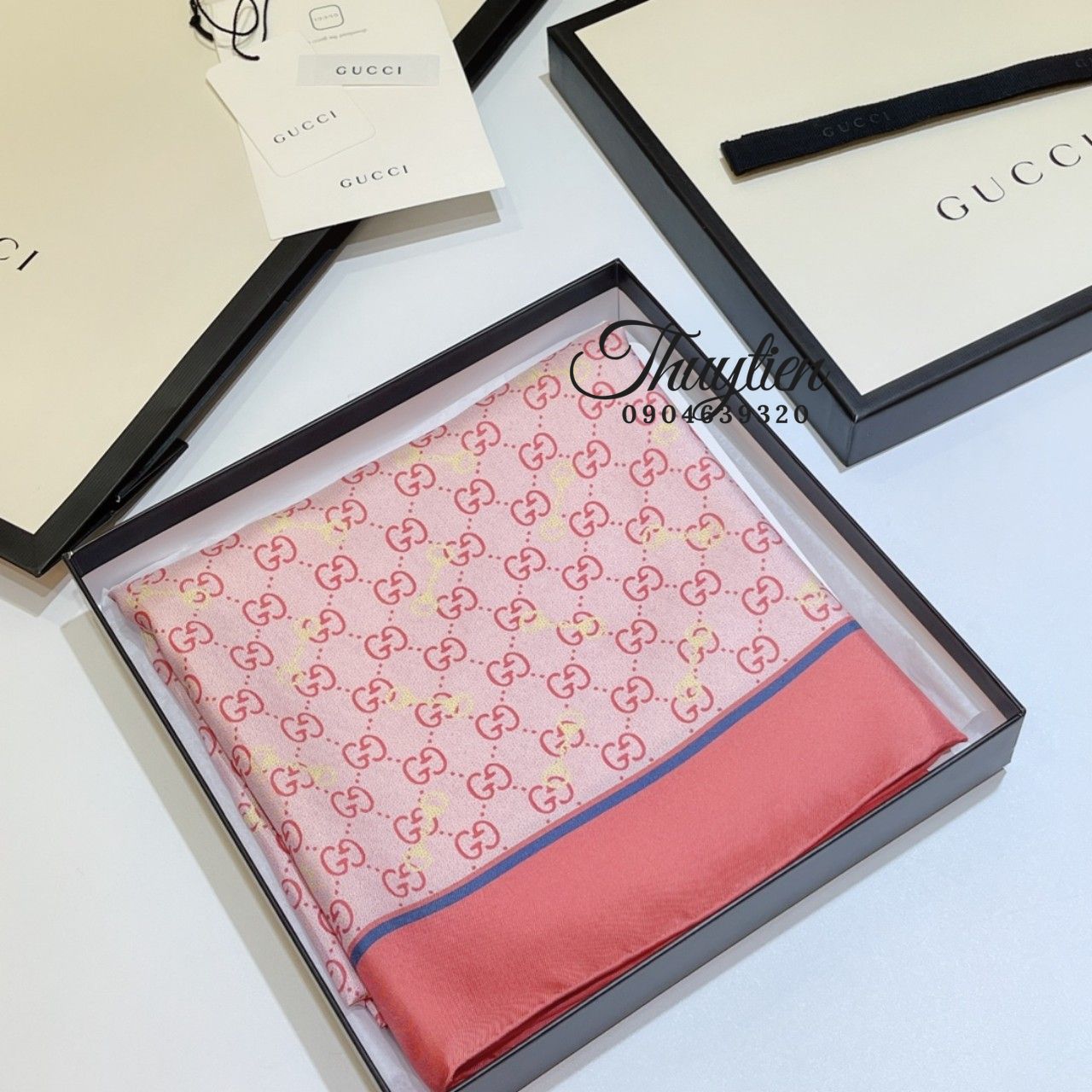 Shop Chuyên Cung Cấp Khăn Lụa Gucci Chuẩn Auth 99%. Khăn là một loại phụ kiện thời trang không chỉ dùng để giữ ấm mà còn đem đến cho chị em phụ nữ một diện mạo mới. Xinh đẹp hơn, nữ tính hơn, quyến rũ hơn và còn đẳng cấp hơn. Nếu nói quần áo, túi xách và giày dép là bộ ba quyền lực trong định hình phong cách thời trang thì khăn, nón và thắt lưng hẳn không thể thiếu nếu muốn thần thái và phong cách của bạn trở nên đẳng cấp và hoàn hảo hơn.