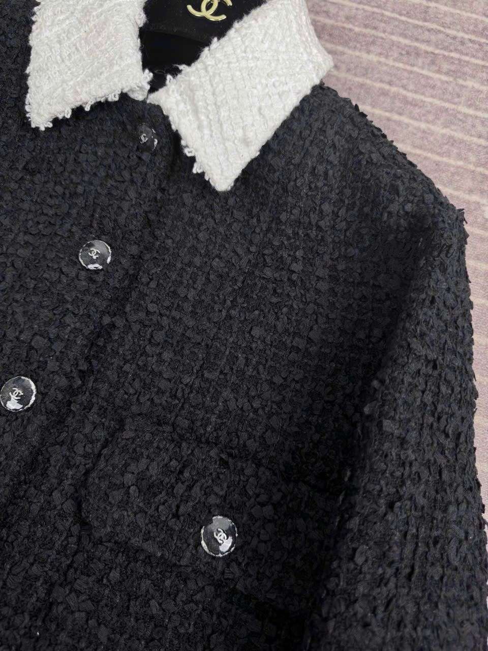 • Áo Khoác Vải Tweed Chanel Màu Đen Replica