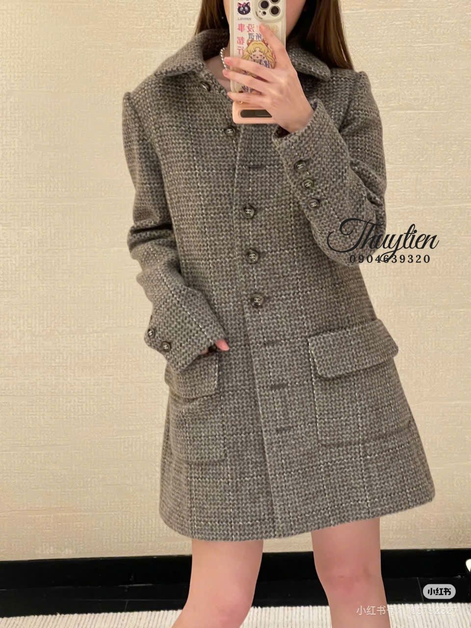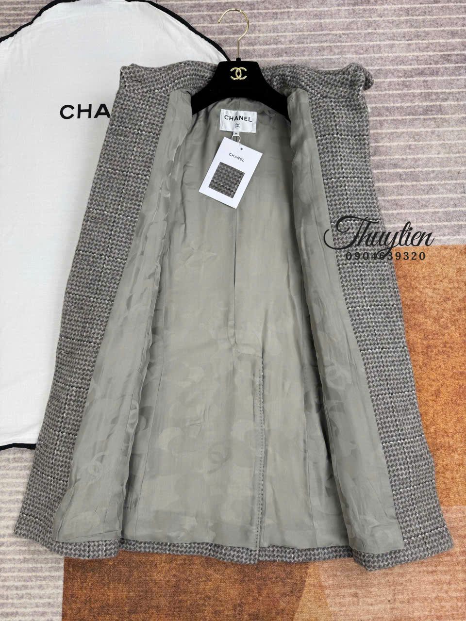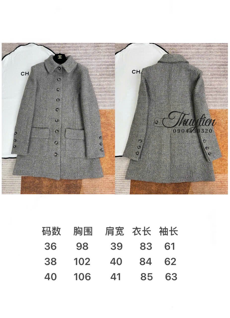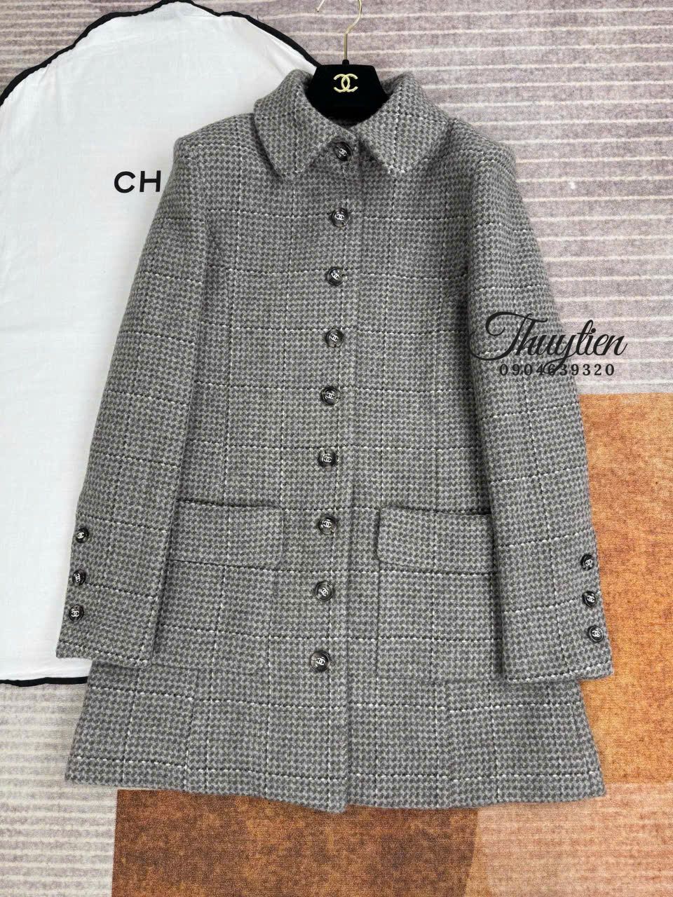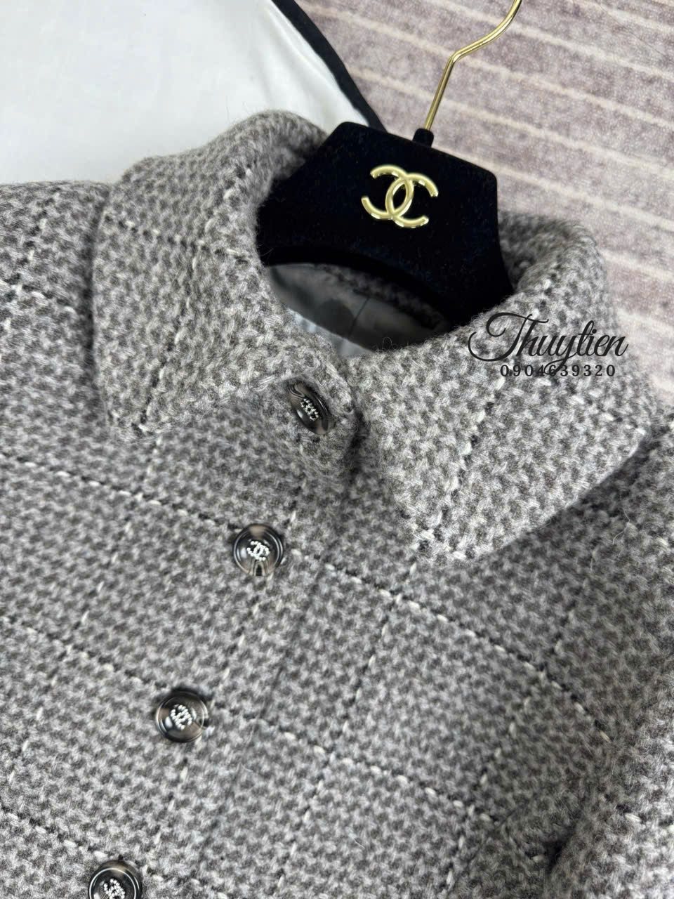 Áo Khoác Tweed Chanel Màu Xám Cao Cấp Phong Cách Thời Thượng