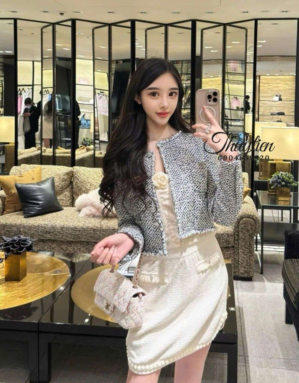Khi chọn áo tweed Chanel 25p like auth, bạn nên ưu tiên size vừa vặn vai để giữ đúng tinh thần thiết kế. Chất tweed không quá co giãn nên chọn đúng số đo vai – ngực sẽ giúp phom áo đẹp và không bị phồng. Shop áo thời trang cao cấp tại Hà Nội sẽ tư vấn chi tiết giúp khách dễ dàng tìm được size phù hợp dáng người.
