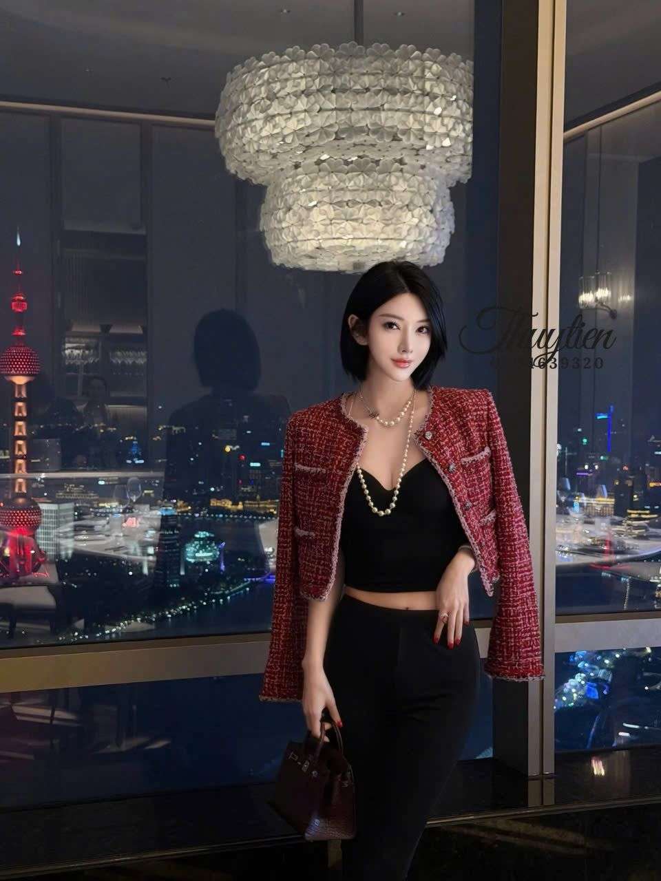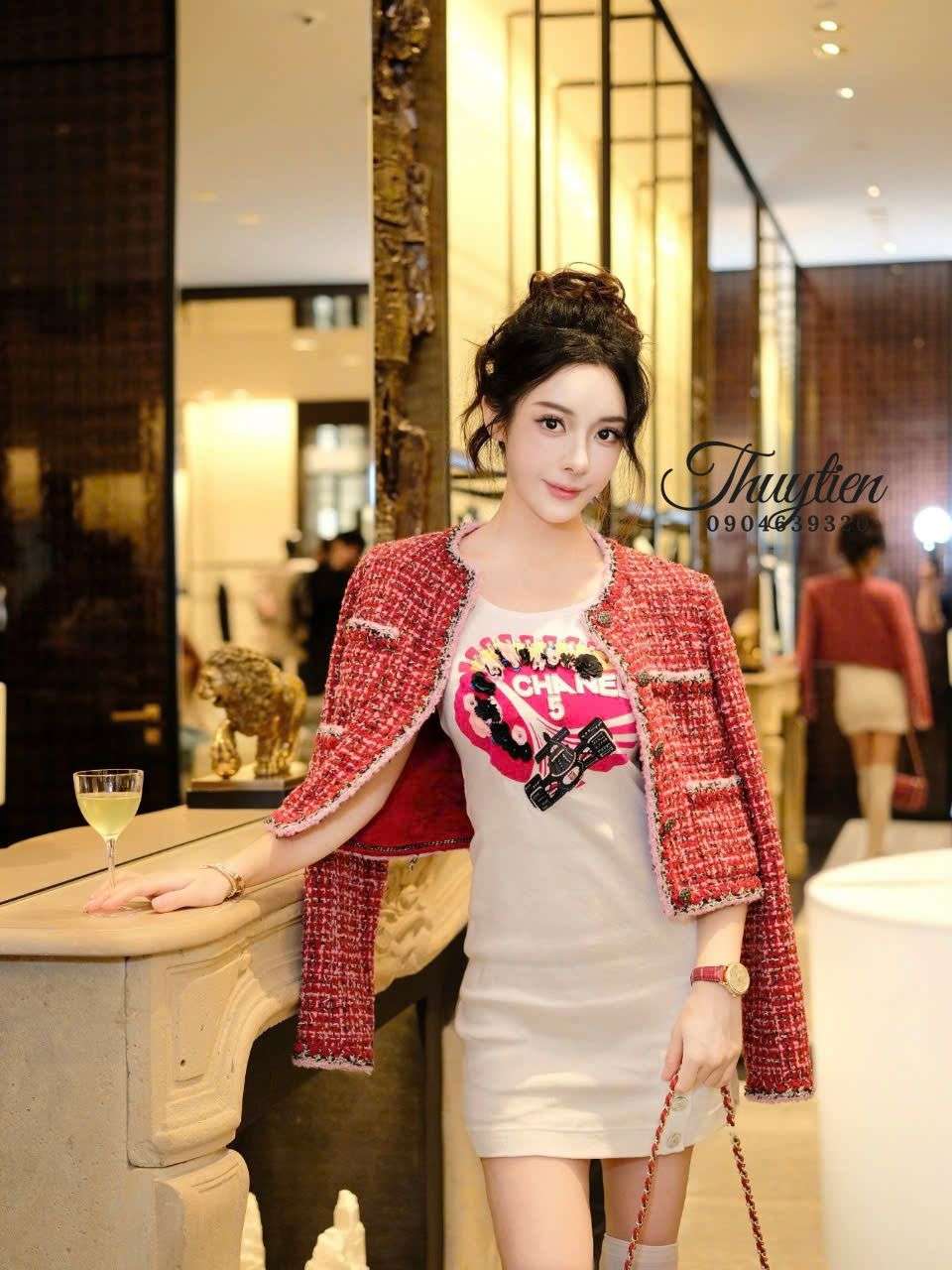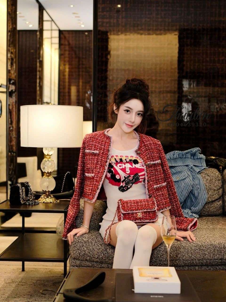 Khi diện mẫu áo này, bạn có thể kết hợp với tông màu đen, trắng hoặc nude để tạo sự cân bằng thị giác. Một chiếc túi Chanel đồng điệu và đôi giày cao gót sẽ giúp tổng thể thêm nổi bật. Với những buổi gặp gỡ, sự kiện hoặc không gian sang trọng, set đồ cùng áo tweed đỏ mang lại vẻ ngoài tự tin, thanh lịch và đầy khí chất.