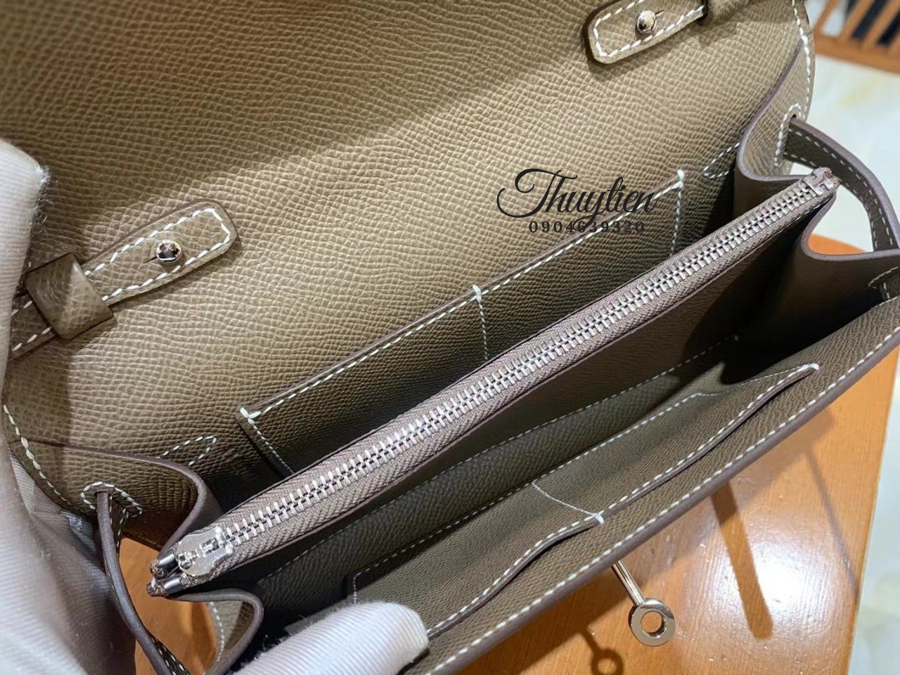 Túi Xách Hermes Khâu Tay Hoàn Toàn Da Epsom Màu Etoupe
