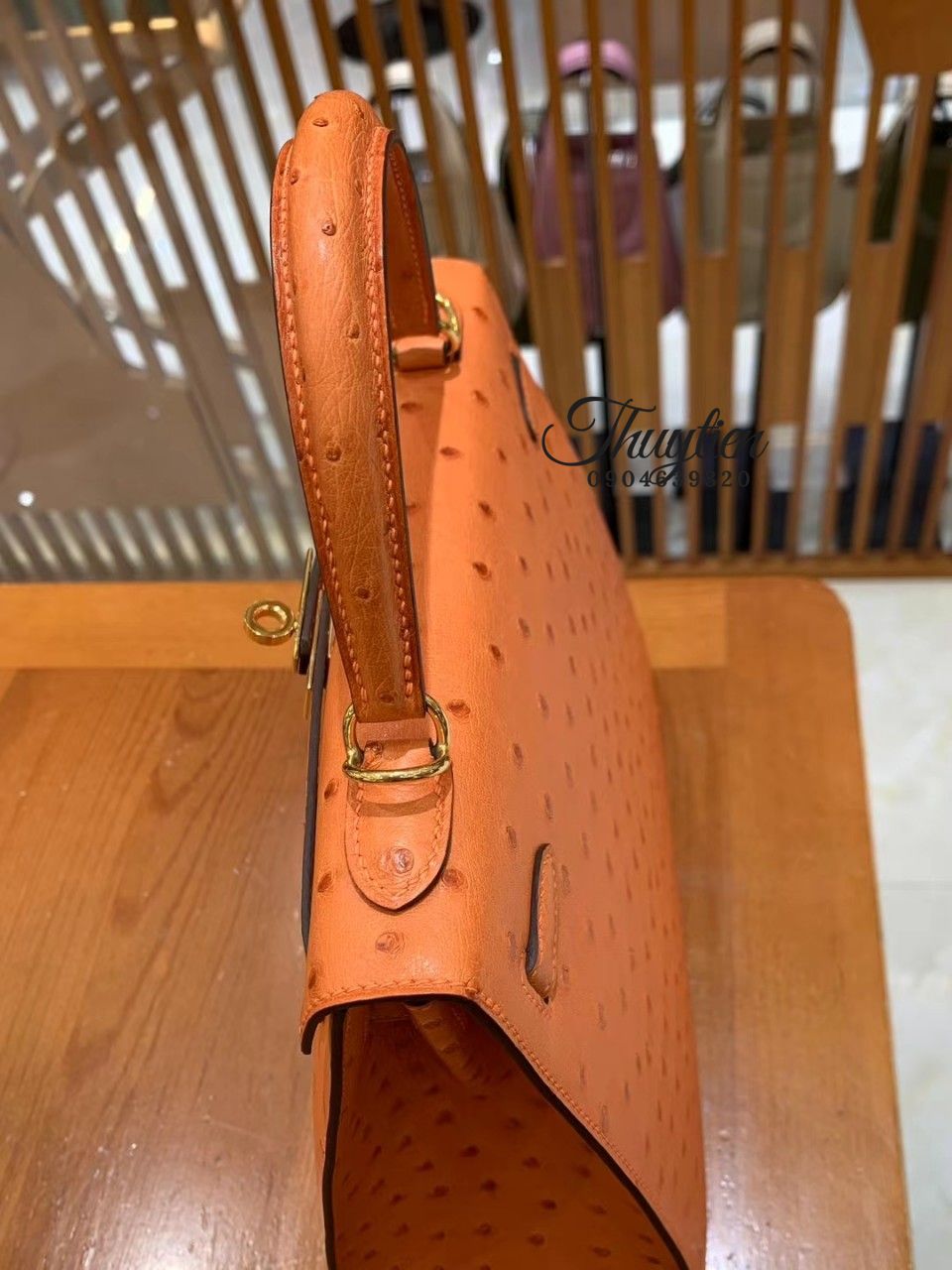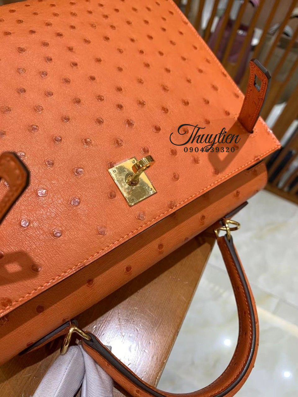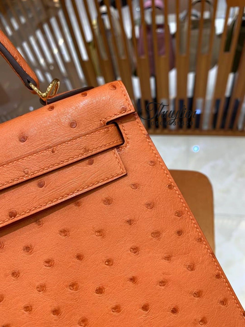 Địa Chỉ Chuyên Bán Túi Xách Hm Kelly Ostrich Orange Sellier Gold Hardware.
