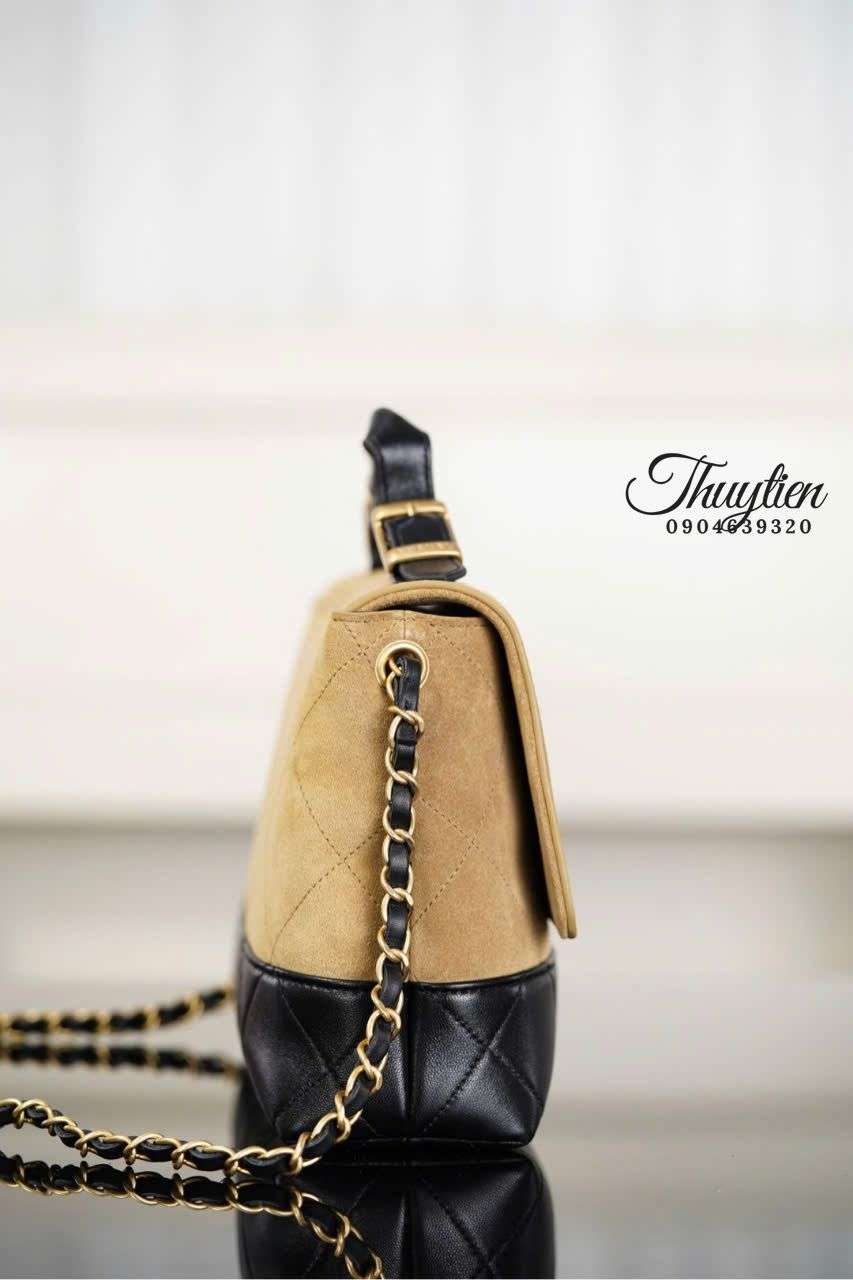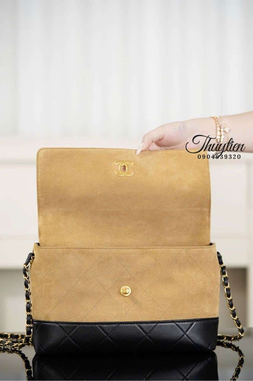 Túi Chanel 25A da lộn không chỉ đẹp ở chất liệu mà còn ở cách phối màu tinh tế theo phong cách sang trọng nhẹ nhàng. Form dáng mềm, đường bo uyển chuyển tạo nên sự hài hòa giữa trẻ trung và quyến rũ. Đây là kiểu thiết kế dễ chinh phục những ai yêu thời trang có chiều sâu, thích sự nhẹ nhàng nhưng vẫn muốn tỏa sáng. Phong cách này tạo nên cá tính riêng mà những chất liệu khác khó tái hiện.