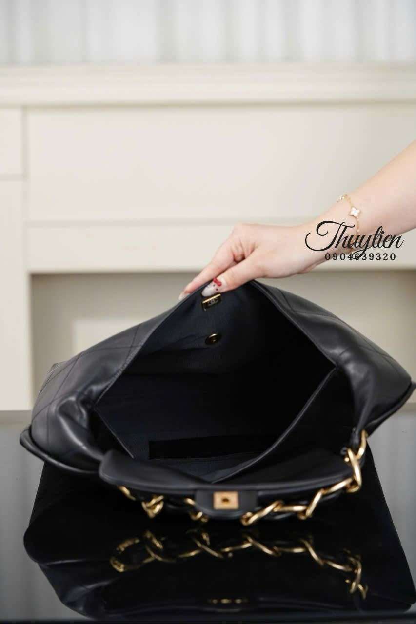 Người dùng đánh giá cao Chanel Hobo 25K size lớn nhờ khả năng đựng đồ tối ưu: điện thoại, ví, mỹ phẩm, sổ tay, kính và nhiều phụ kiện khác. Ngăn trong được thiết kế khoa học giúp sắp xếp gọn gàng mà không làm mất dáng túi. Khi sử dụng hàng ngày, cảm giác đeo cực kỳ êm vai, thao tác mở – đóng nhẹ nhàng, phù hợp cả khi đi làm lẫn đi chơi. Đây là điểm cộng khiến mẫu túi được yêu thích bởi sự tiện lợi và tính ứng dụng cao.