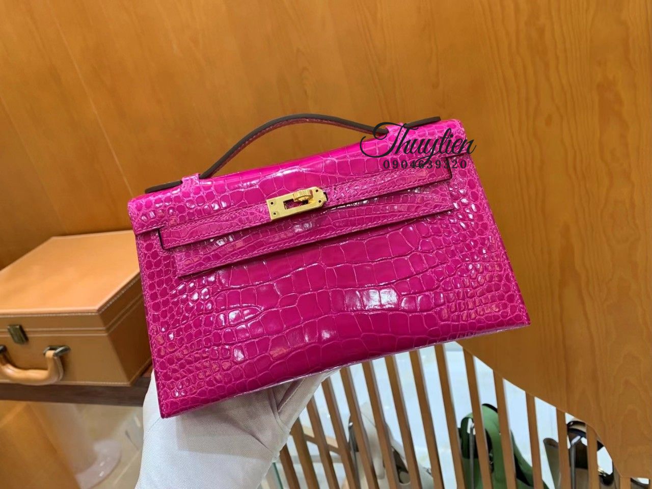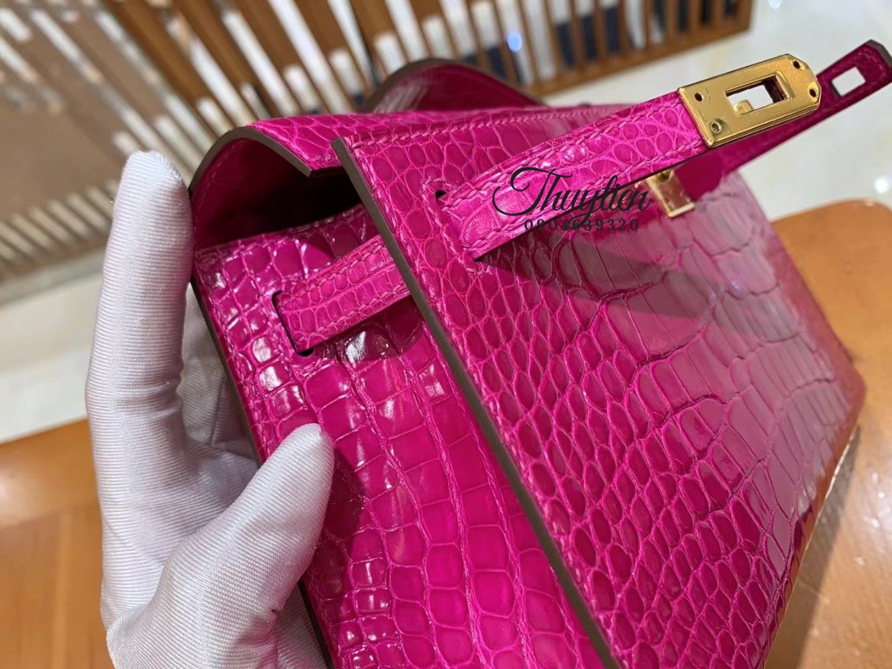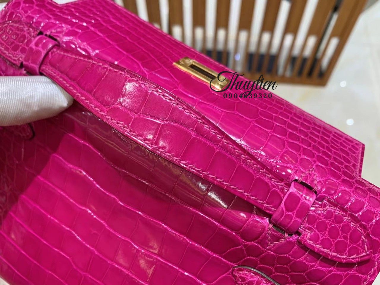 Túi Xách Hermes Kelly Size 22cm Da Cá Sấu Màu Hồng Vip