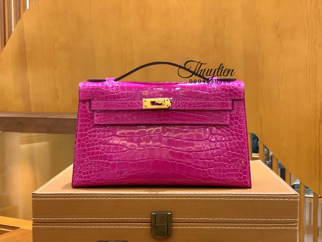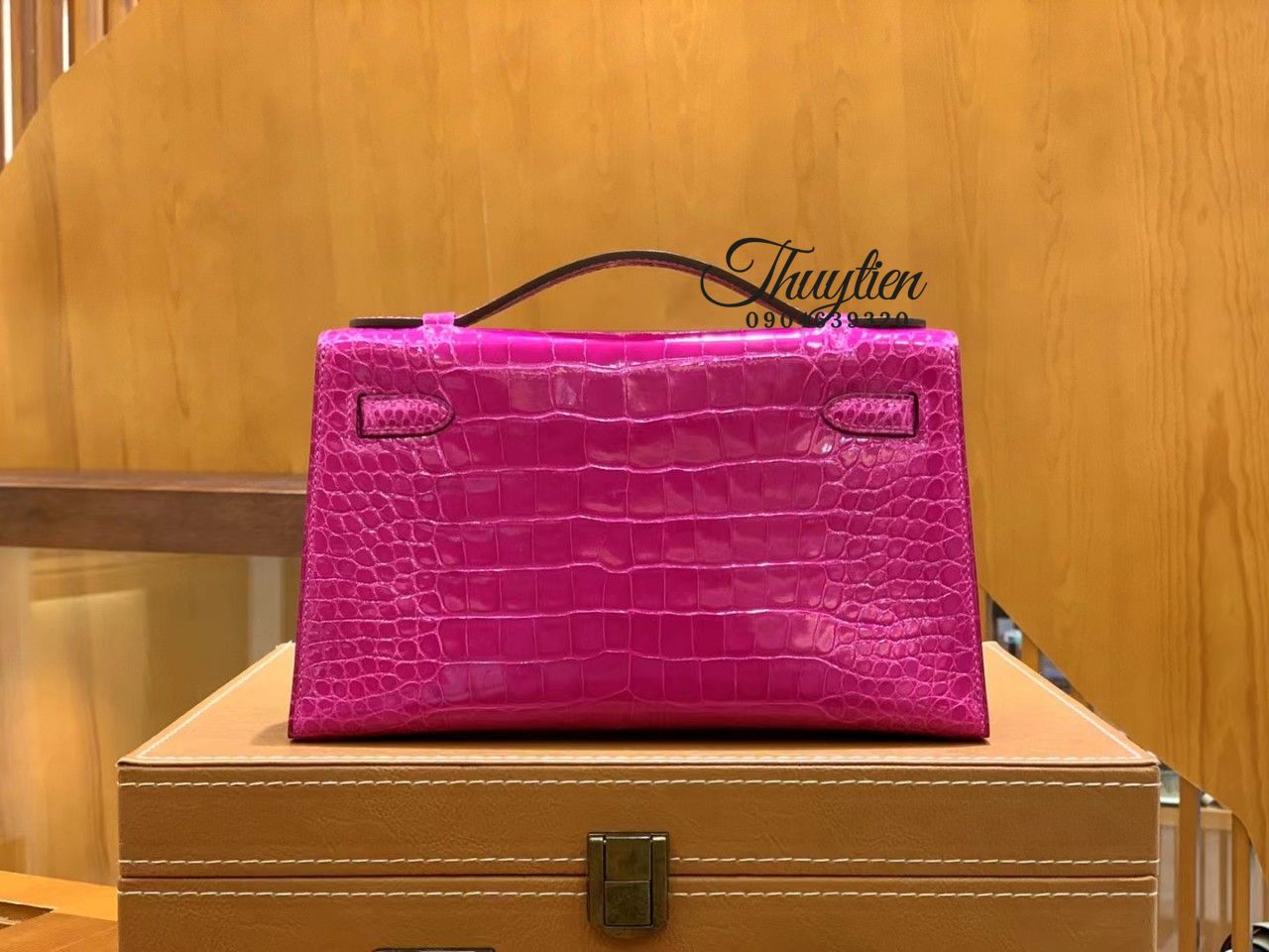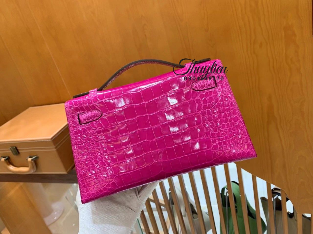 Túi Xách Hermes Kelly Size 22cm Da Cá Sấu Màu Hồng Vip