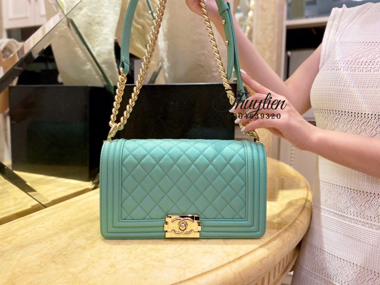 Để khách hàng không phải mất thời gian tìm kiếm Túi Xách Chanel Boy Da Caviar. Hôm nay chúng tôi tự hào giới thiệu tới quý khách shop túi xách VIP Thủy Tiên với nhiều năm kinh nghiệm trong lĩnh vực cung cấp sỉ lẻ túi xách giày dép trong và ngoài nước. Qua nhiều năm lăn lộn trong nghề chúng tôi định hình và phân biệt rõ ràng đâu là sản phẩm cao cấp, đâu là thứ cấp. Để từ đó cam kết chỉ cung cấp và nhận order dòng hàng cao cấp nhất – túi xách vip.
