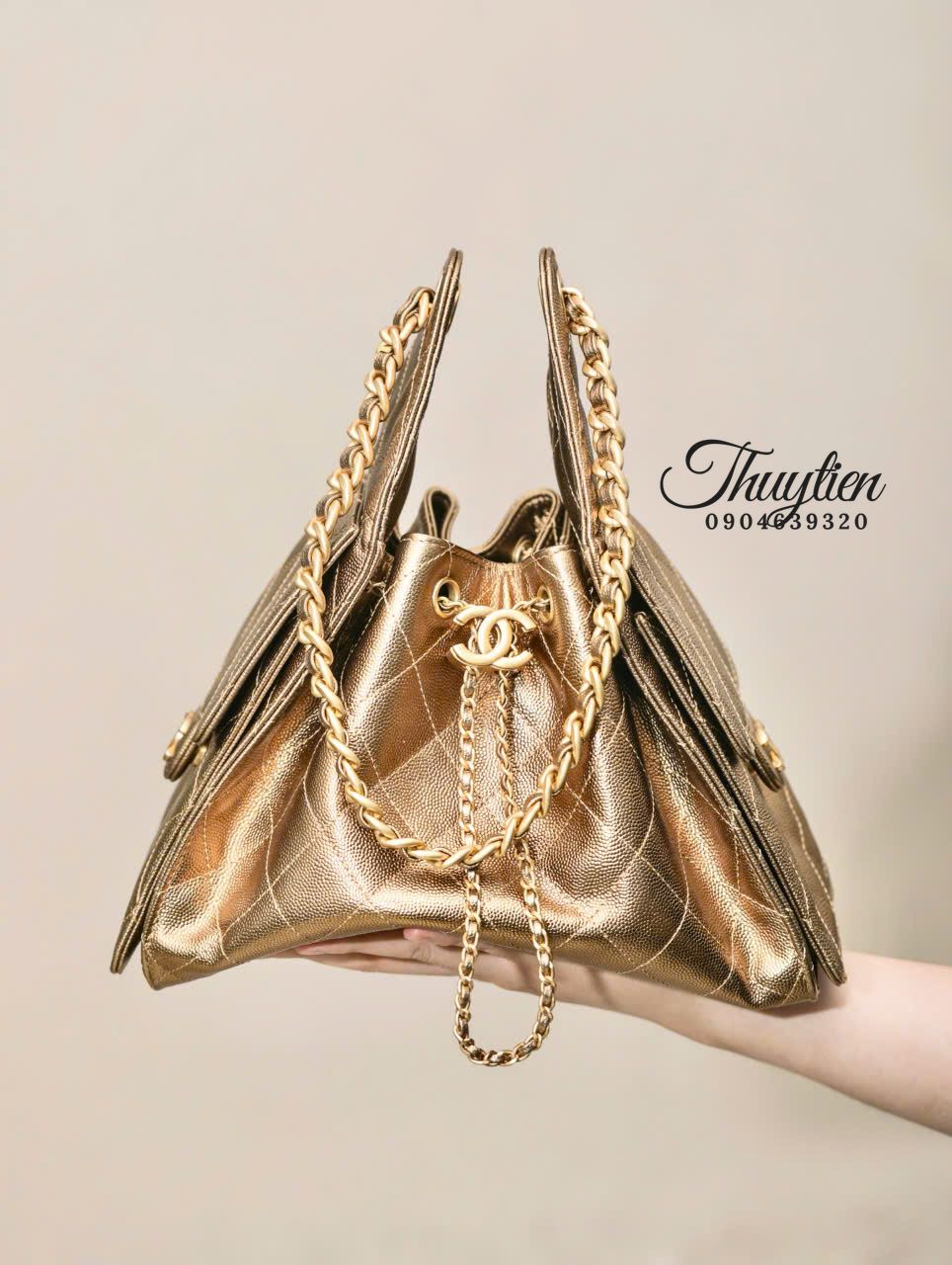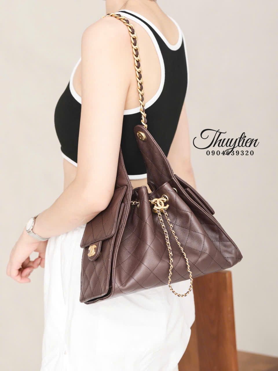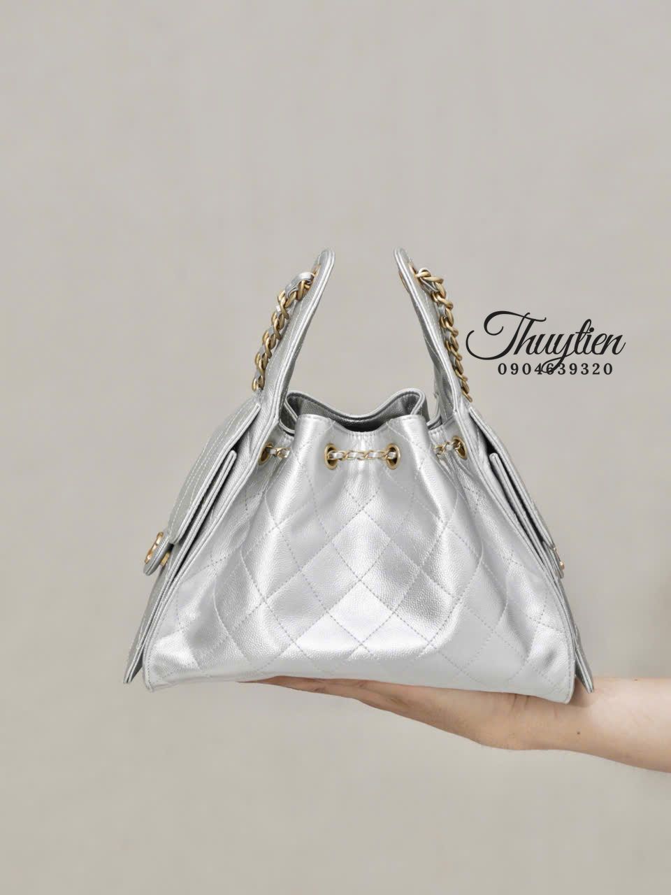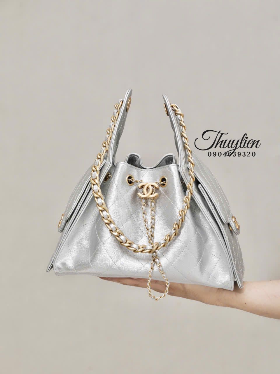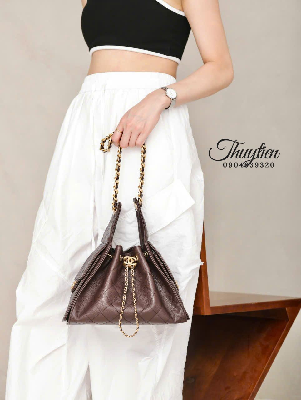 Mẫu Chanel Hobo 25S này hướng đến sự nữ tính tinh tế: đường cong mềm mại, tỉ lệ hài hòa và chi tiết làm nổi bật sự duyên dáng. Khi mang, chiếc túi tạo điểm nhấn trang nhã cho cả trang phục công sở lẫn bộ đồ dạo phố, mang lại cảm giác nhẹ nhàng nhưng vẫn rất sang trọng.