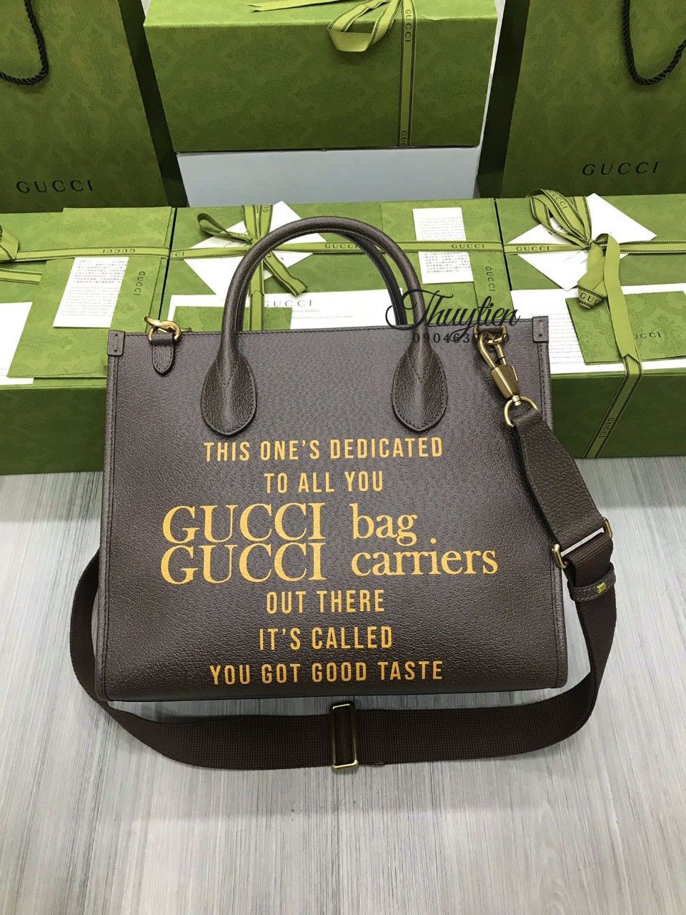 Túi Xách Gucci Tote Luxury - Hàng Cao Cấp Nhất. Trong việc kinh doanh túi xách, giày dép. Các tên gọi như túi xách Vip 1:1, Giỏ xách Rep 1:1, giày Like auth 1:1.... trên thị trường cứ tự phong tặng tùy tiện mà không ai kiểm soát. Như Túi Hermes dòng Birkin hay kelly giá 6 triệu, 7 triệu mà cứ quảng cáo tưng bừng khí thế là Vip 1:1. Hay túi Chanel dòng Boy, Classic chỉ 3 triệu - 4 triệu mà cũng tự tin tung hô Like auth 99% hay Rep 1:1. rồi Dior, Gucci và giày dép các loại cũng vậy. Thậm chí dòng hàng Super, F1 giá 500k -700k cũng phong tặng danh hiệu VIP, REP, LIKE AUTH....Ôi thôi đọc mà cười ra nước mắt! Cùng 1 sản phẩm mấy trăm ngàn cho tới vài ba triệu rồi đến vài chục triệu cũng đều gọi là VIP VIP VIP vậy biết chọn cái nào, giá nào mà mua?!