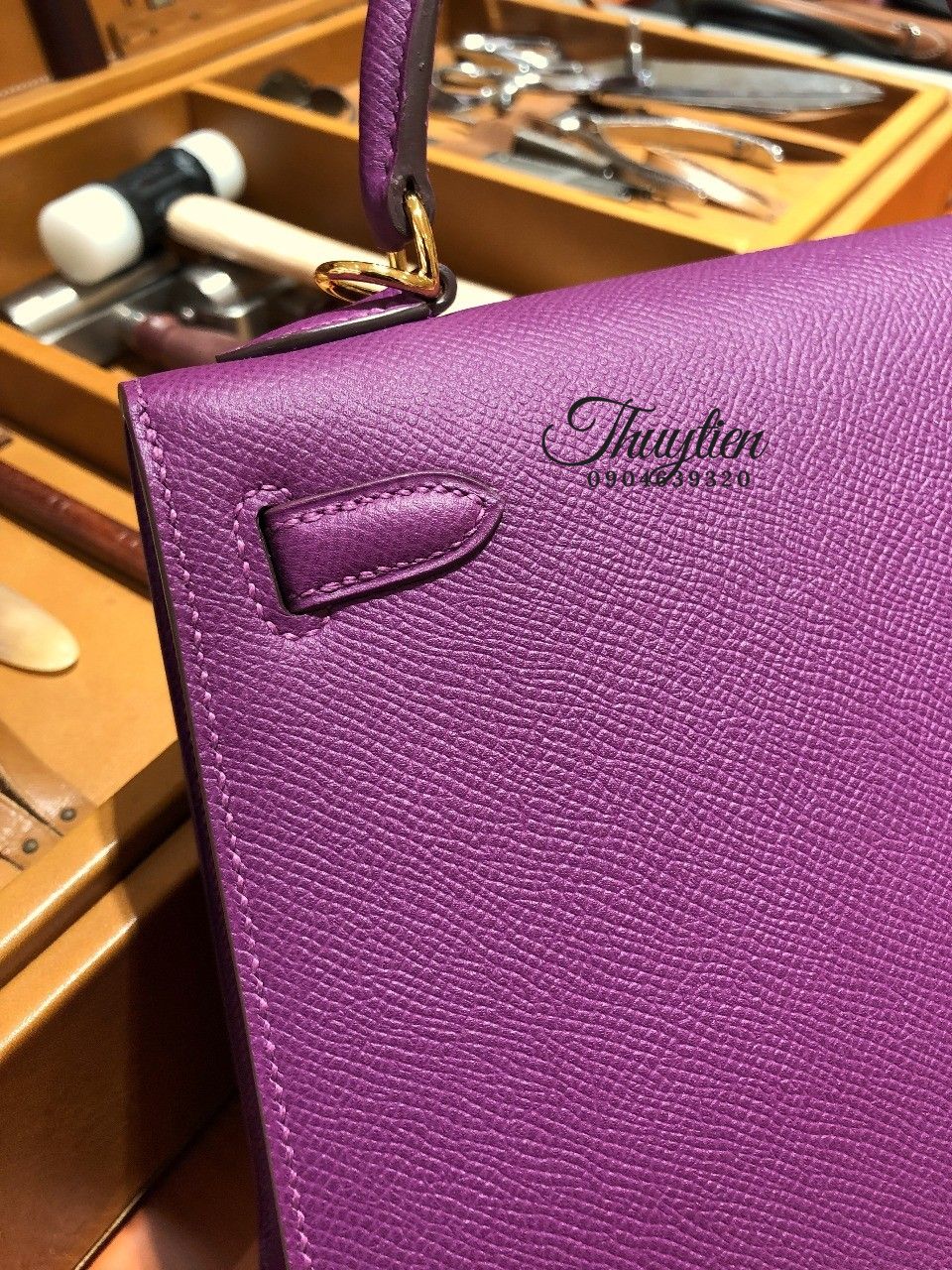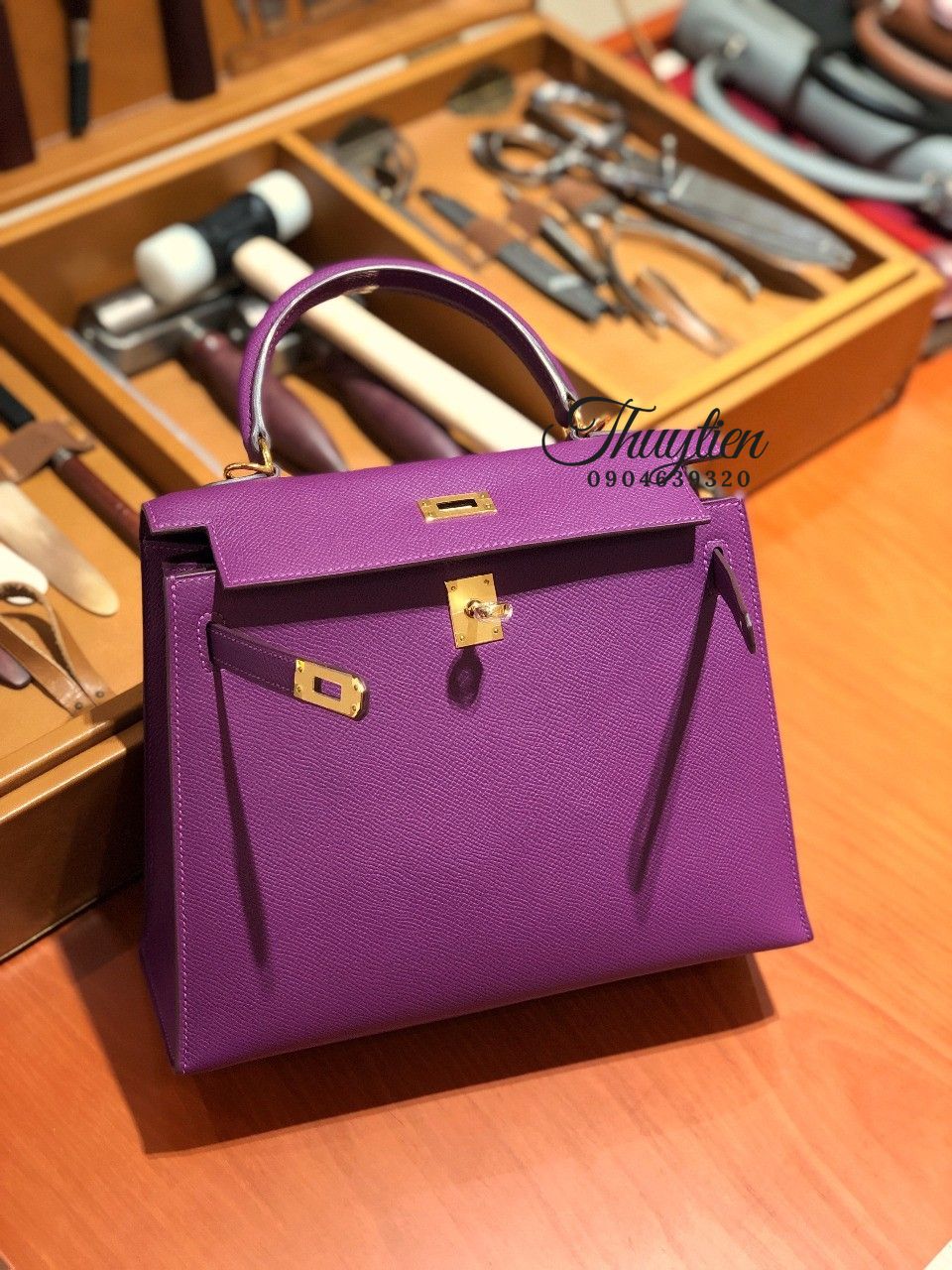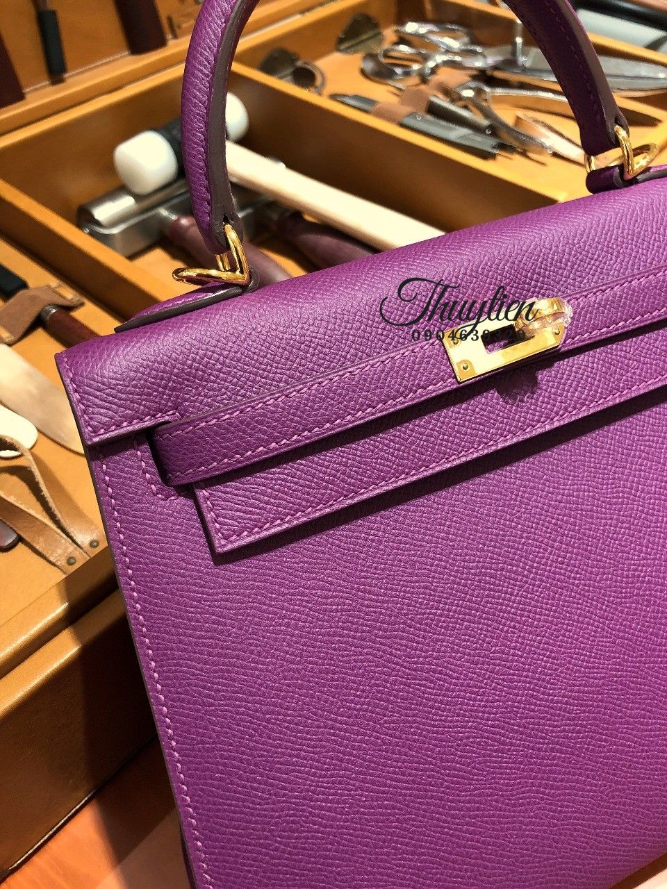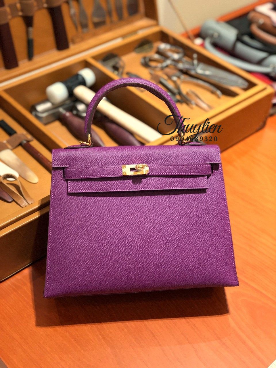 Túi Xách Hermes Kelly Màu Tím Enemone May Tay 100%