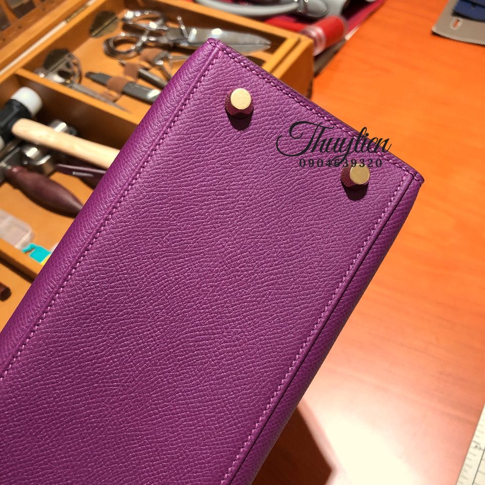 Giỏ Xách Hermes Hm Kelly Size 25cm Màu Tím Enemone Handmade