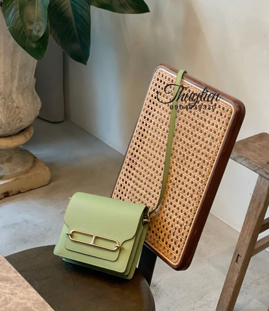 Túi Xách Hermes Roulis Da Evercolor Rep 1:1 Màu Xanh Cốm Khóa Vàng