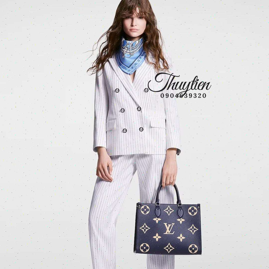Túi Xách Lv Onthego MM Màu Xanh Dương Da Thật Mới Nhất Năm Nay