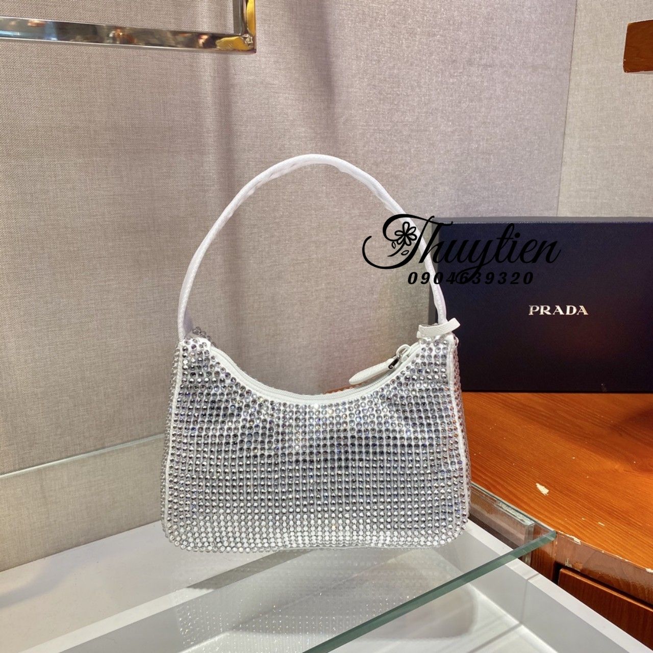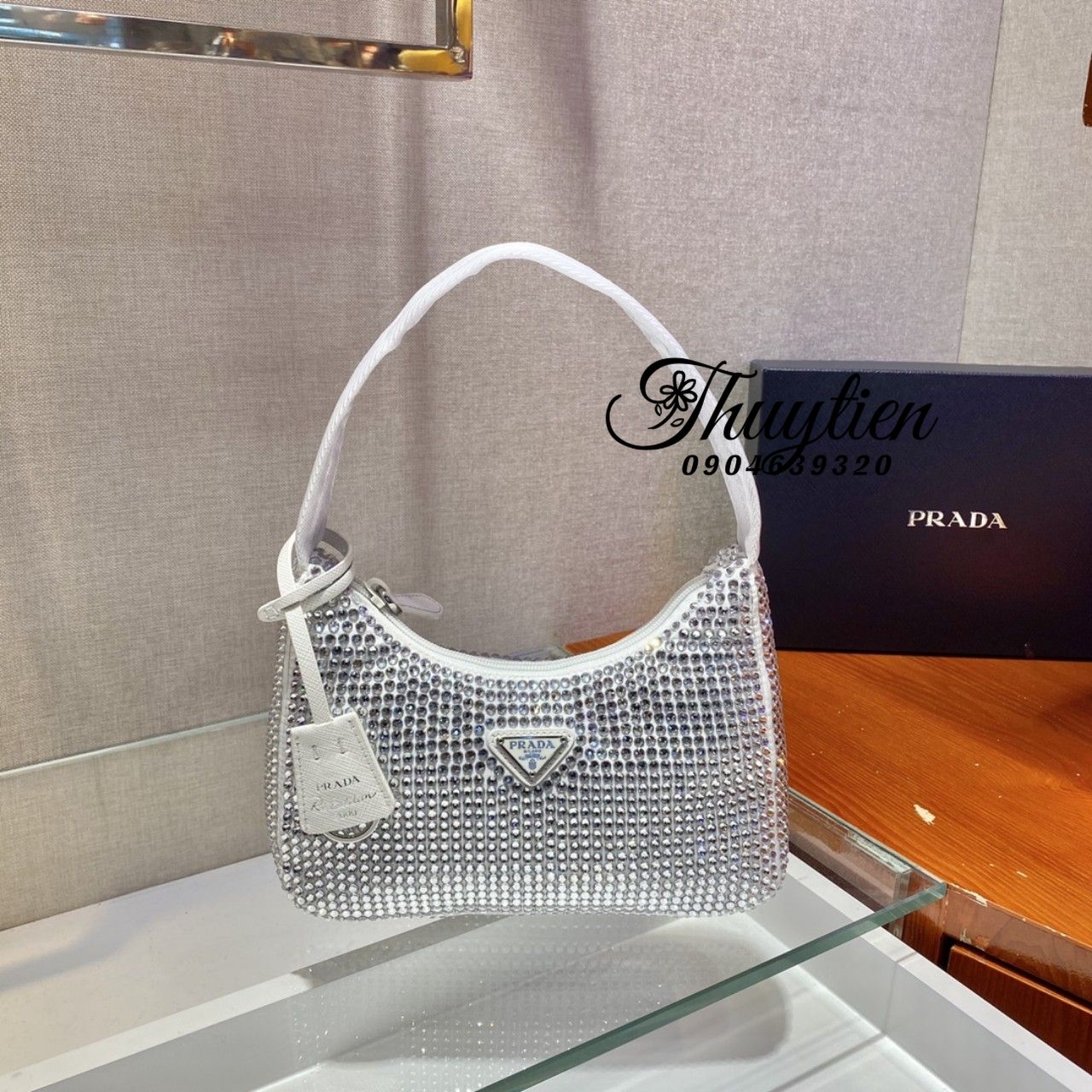 Túi Xách Prada Hobo Đính Đá Siêu Cấp Like Auth - Túi Xách Chuẩn Vip 99%