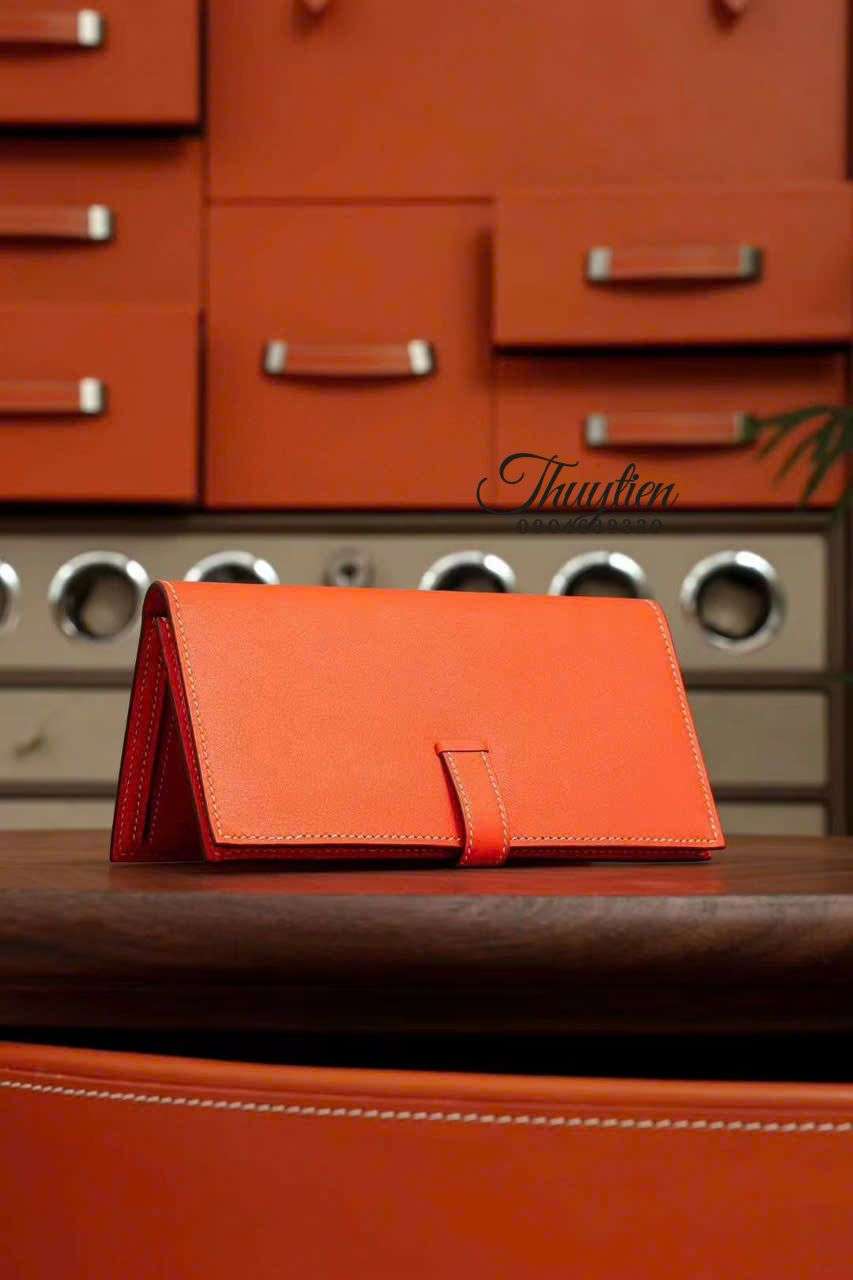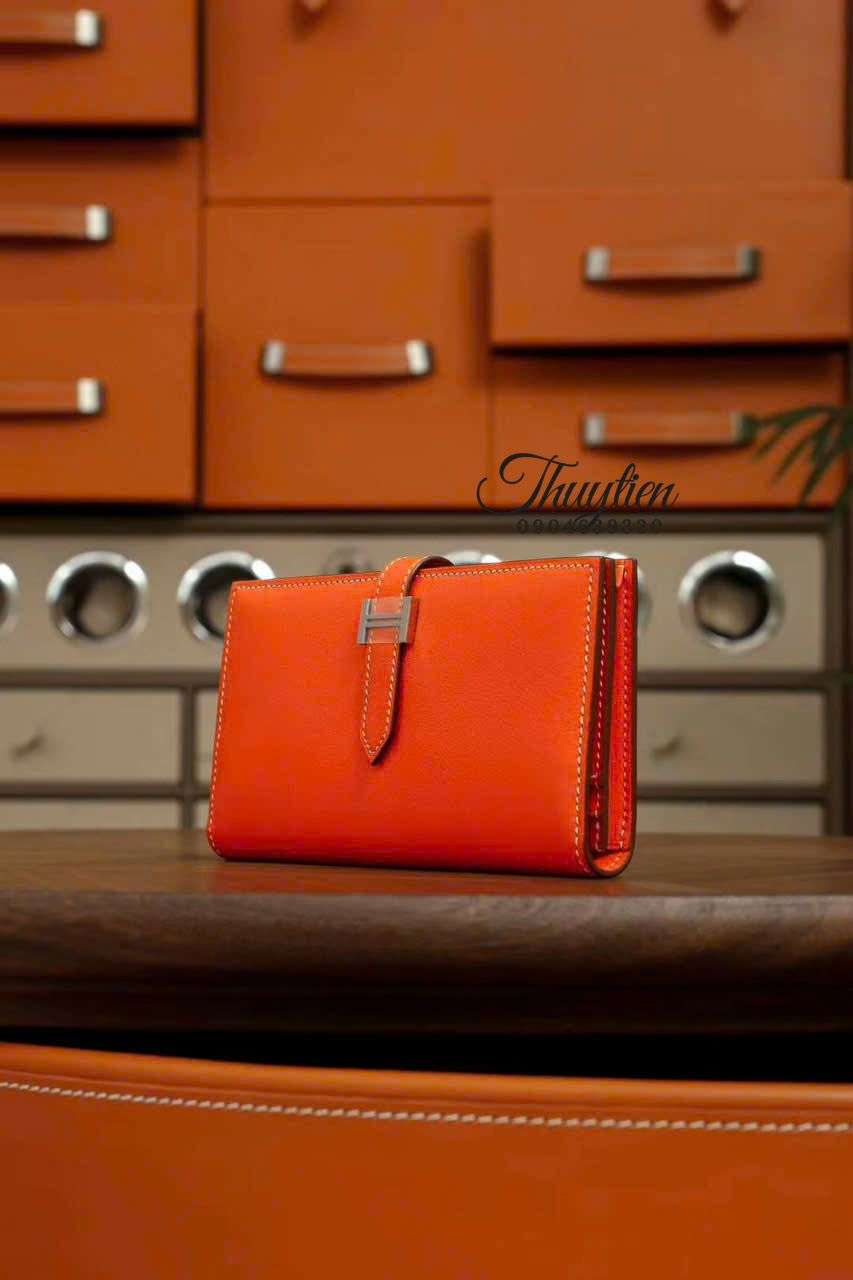 Ví Tiền Hermes Bearn Wallet Orange Khâu Tay Chuẩn Authentic 1:1.