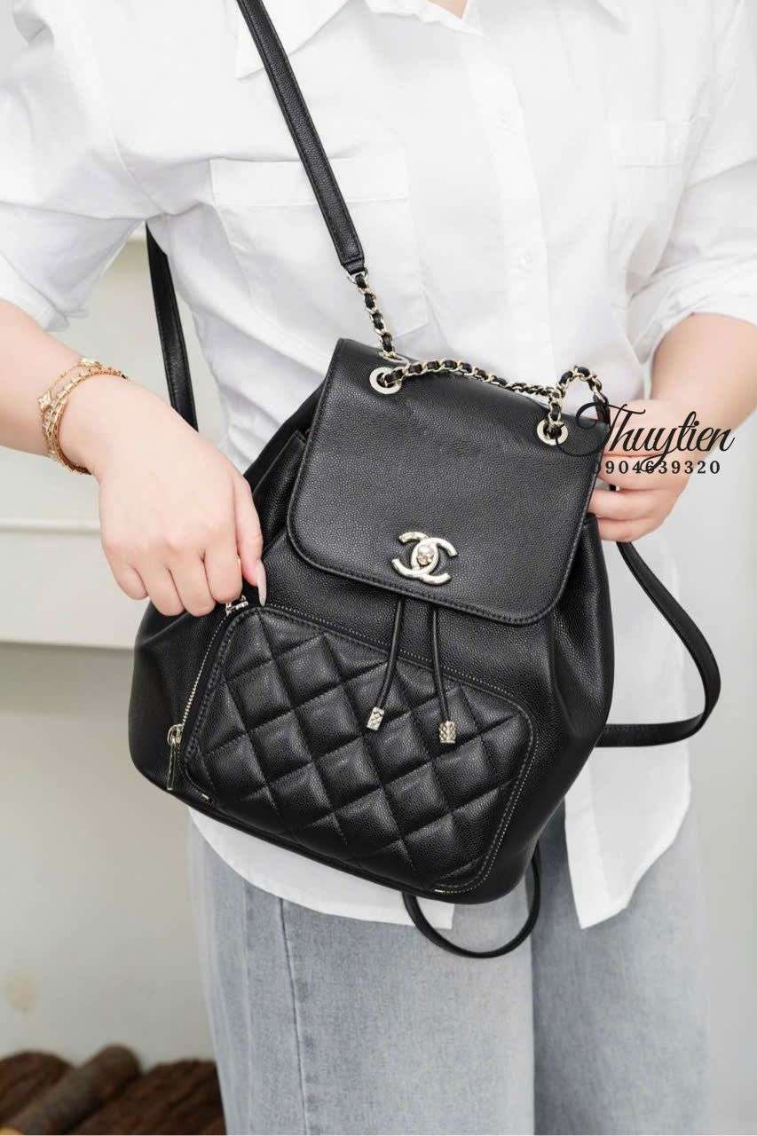 Trong xu hướng thời trang hiện đại, balo Chanel size lớn đang thể hiện một sự chuyển dịch rõ rệt về phong cách: tối giản, mạnh mẽ nhưng vẫn giữ được tinh thần thanh lịch đặc trưng của nhà mốt. Mẫu da bê sần màu đen trở thành lựa chọn nổi bật nhờ vẻ đẹp cân bằng giữa tính ứng dụng và khí chất sang trọng. Form lớn mang lại chiều sâu thị giác, phù hợp với nhiều kiểu trang phục từ công sở đến streetwear. Đây cũng là thiết kế được nhiều khách hàng tại Thùy Tiên đánh giá cao vì đáp ứng đồng thời thẩm mỹ và công năng hằng ngày.