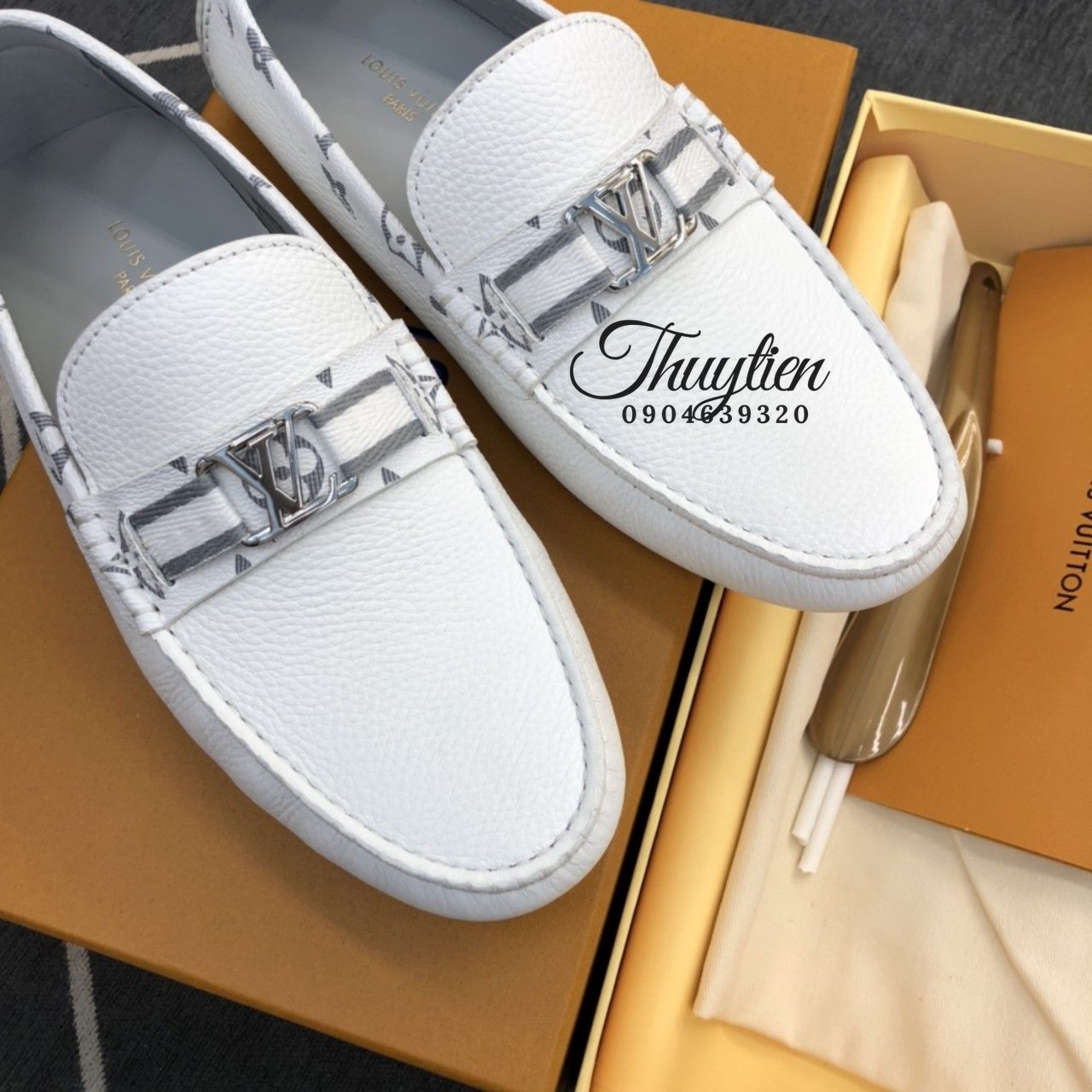• Giày lười Louis Vuitton nam da thật màu trắng
