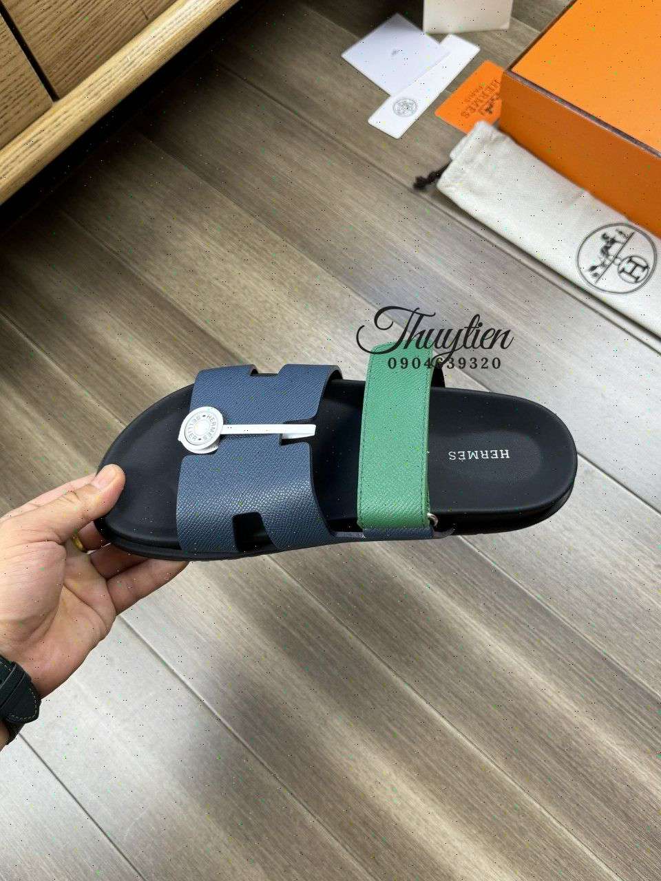 • Dép Lê Hermes - Hm nam da bê Luxury