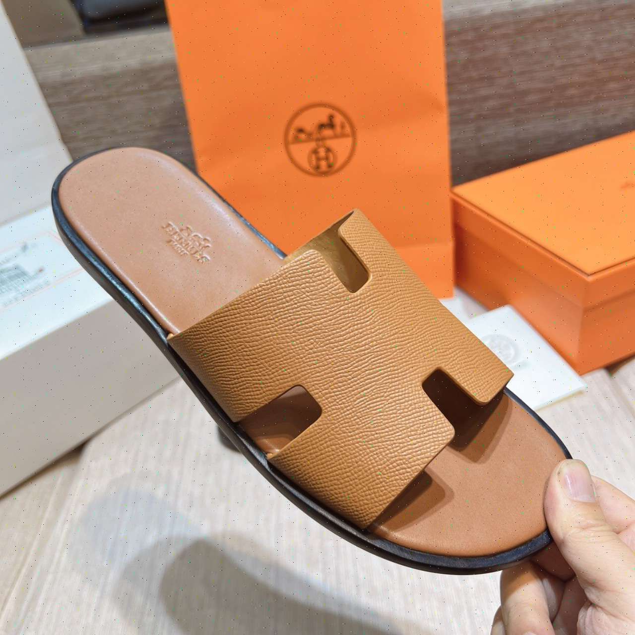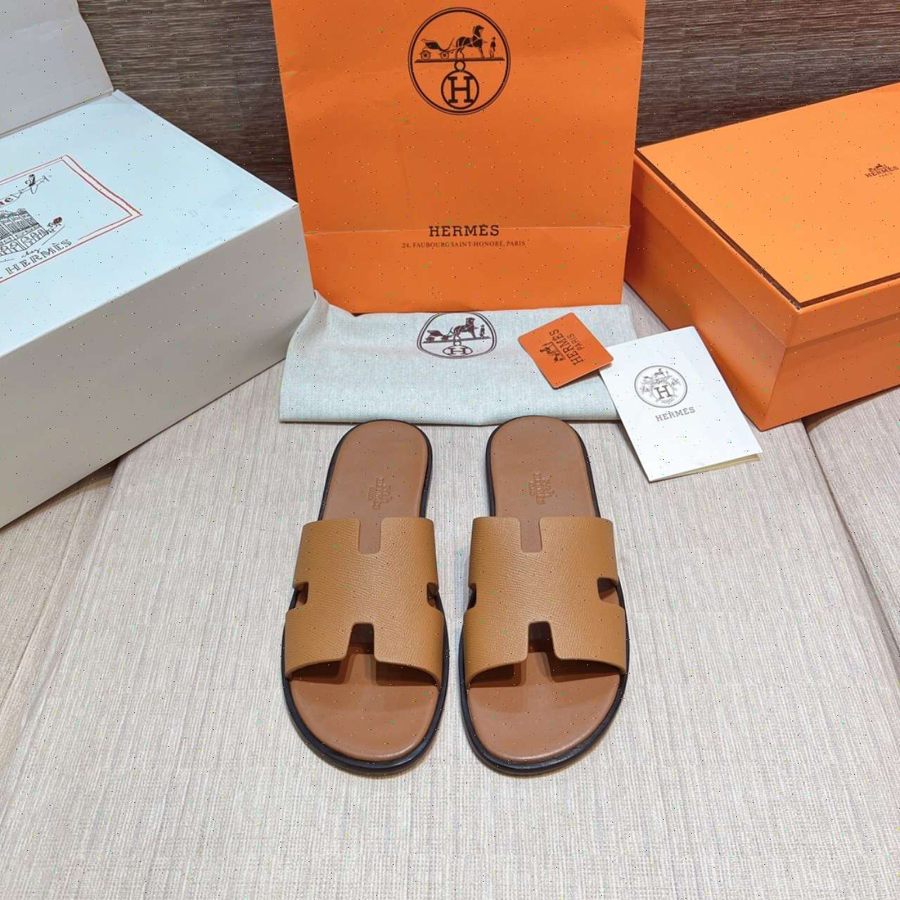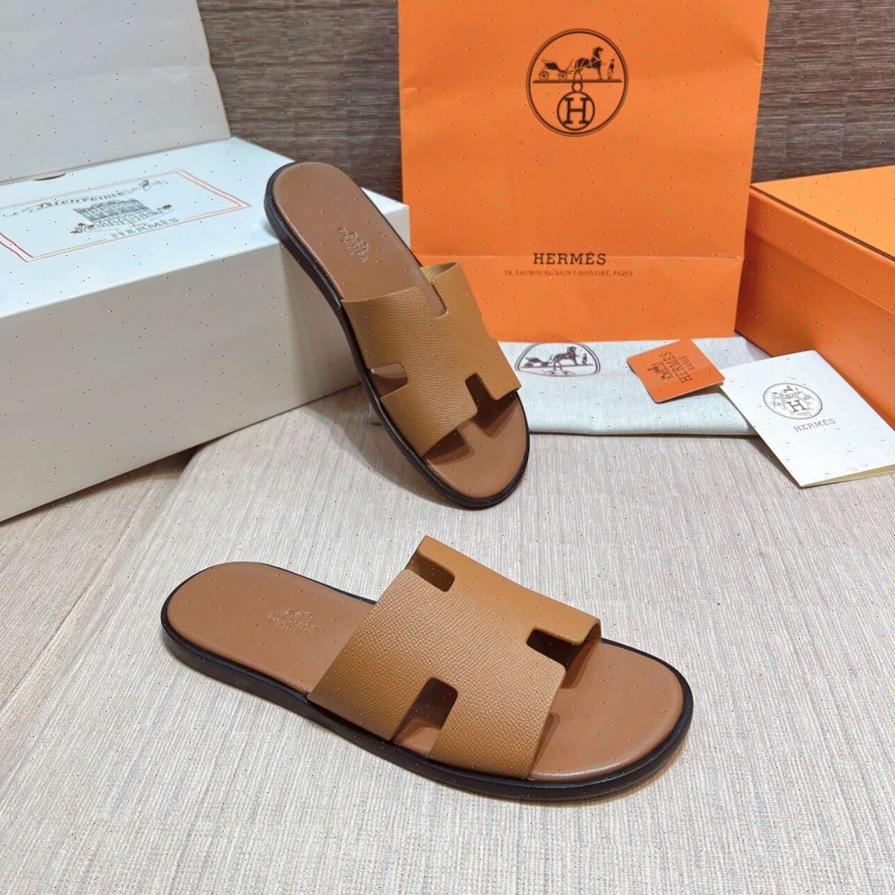 • Dép Lê Hermes - Hm nam màu nâu Like Auth 99%
