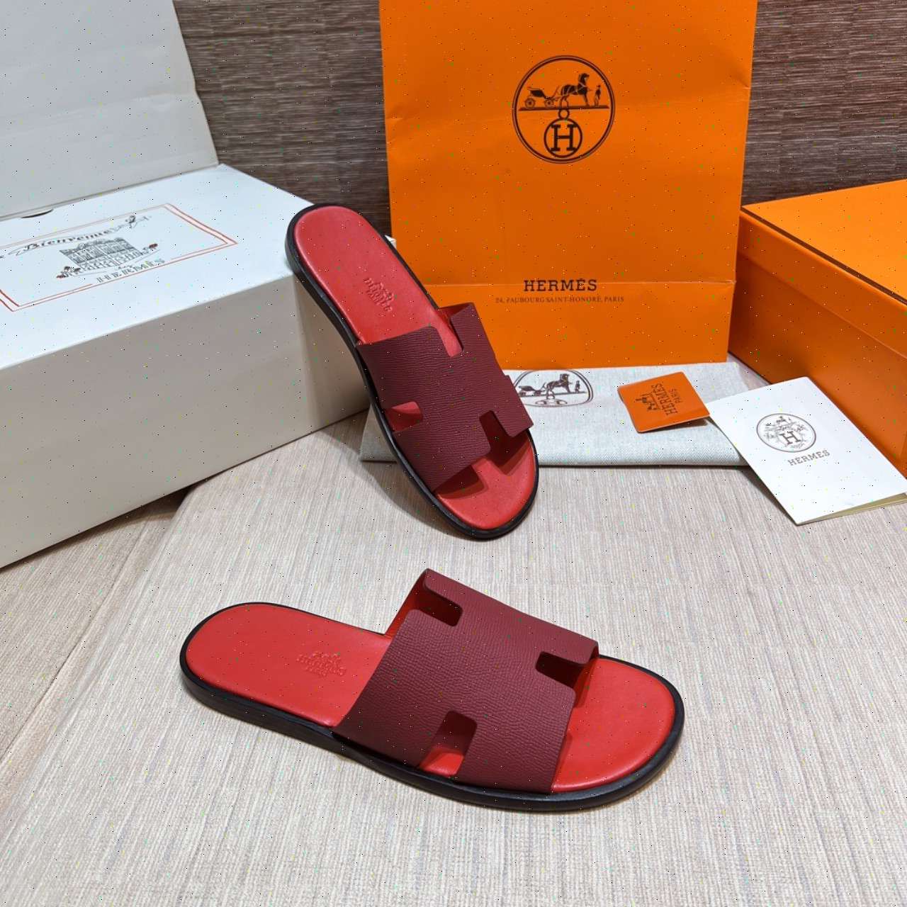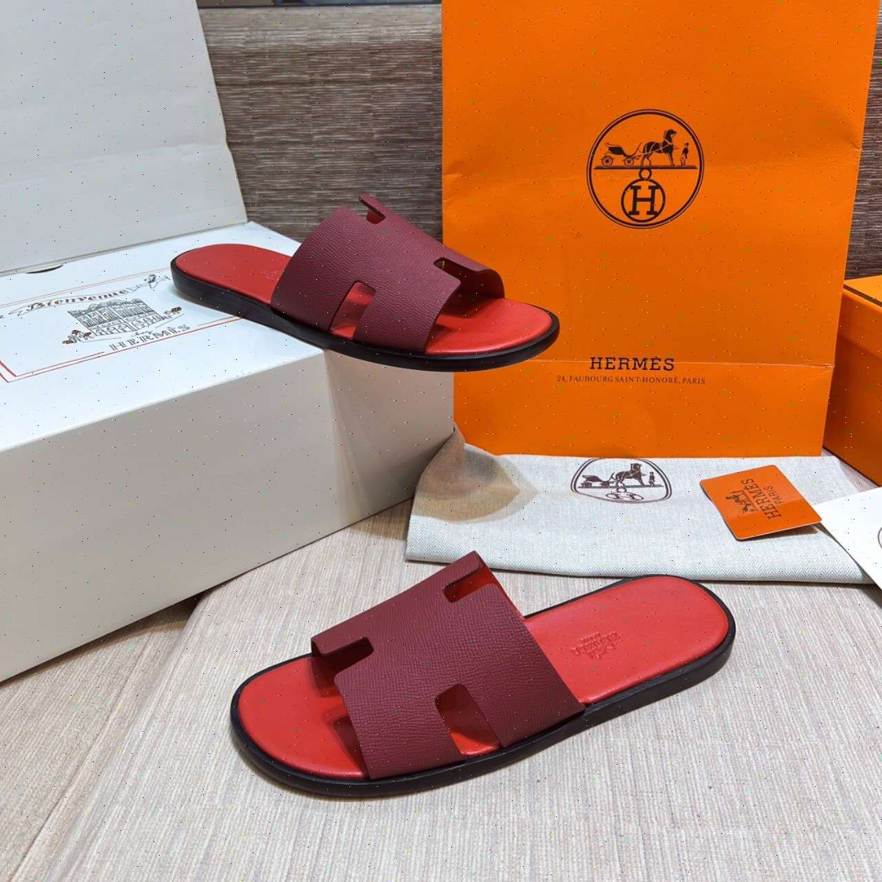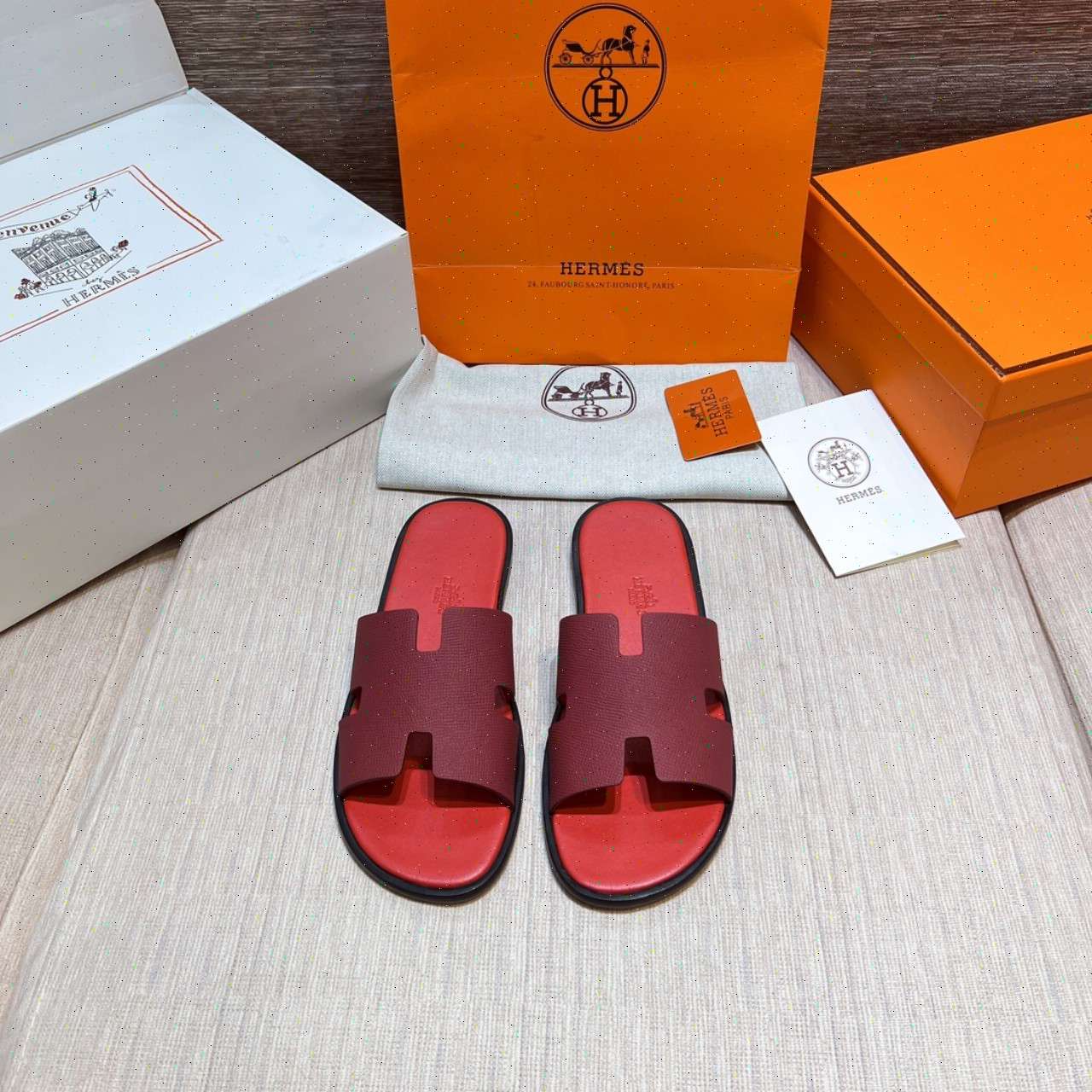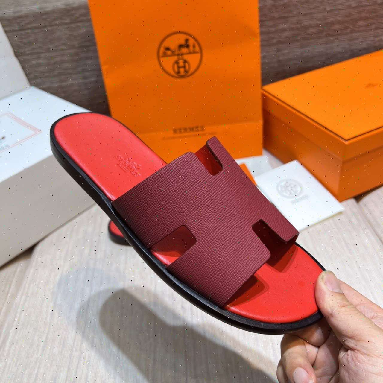 • Dép Lê Hermes - Hm nam màu đỏ siêu cấp Like Auth
