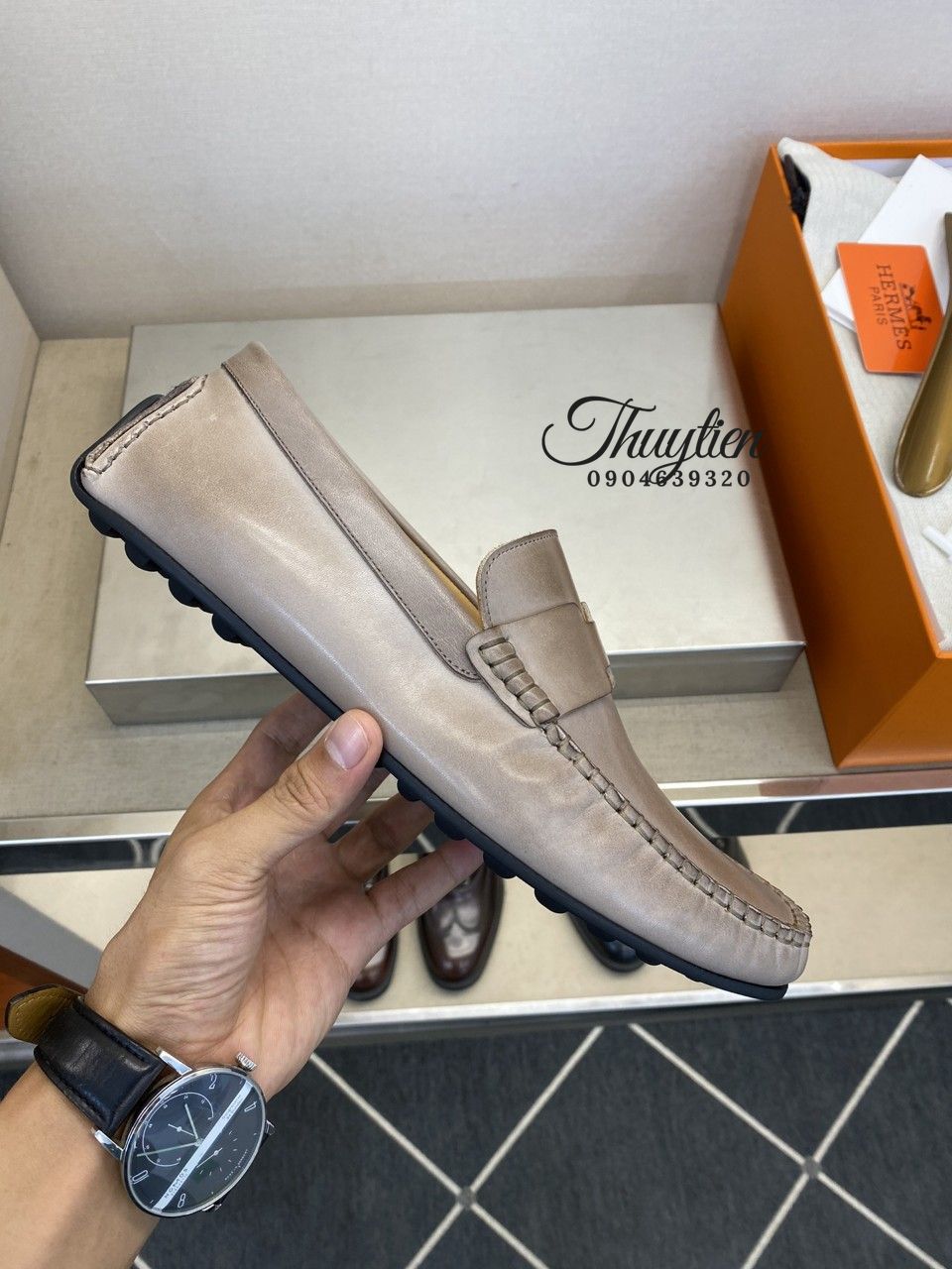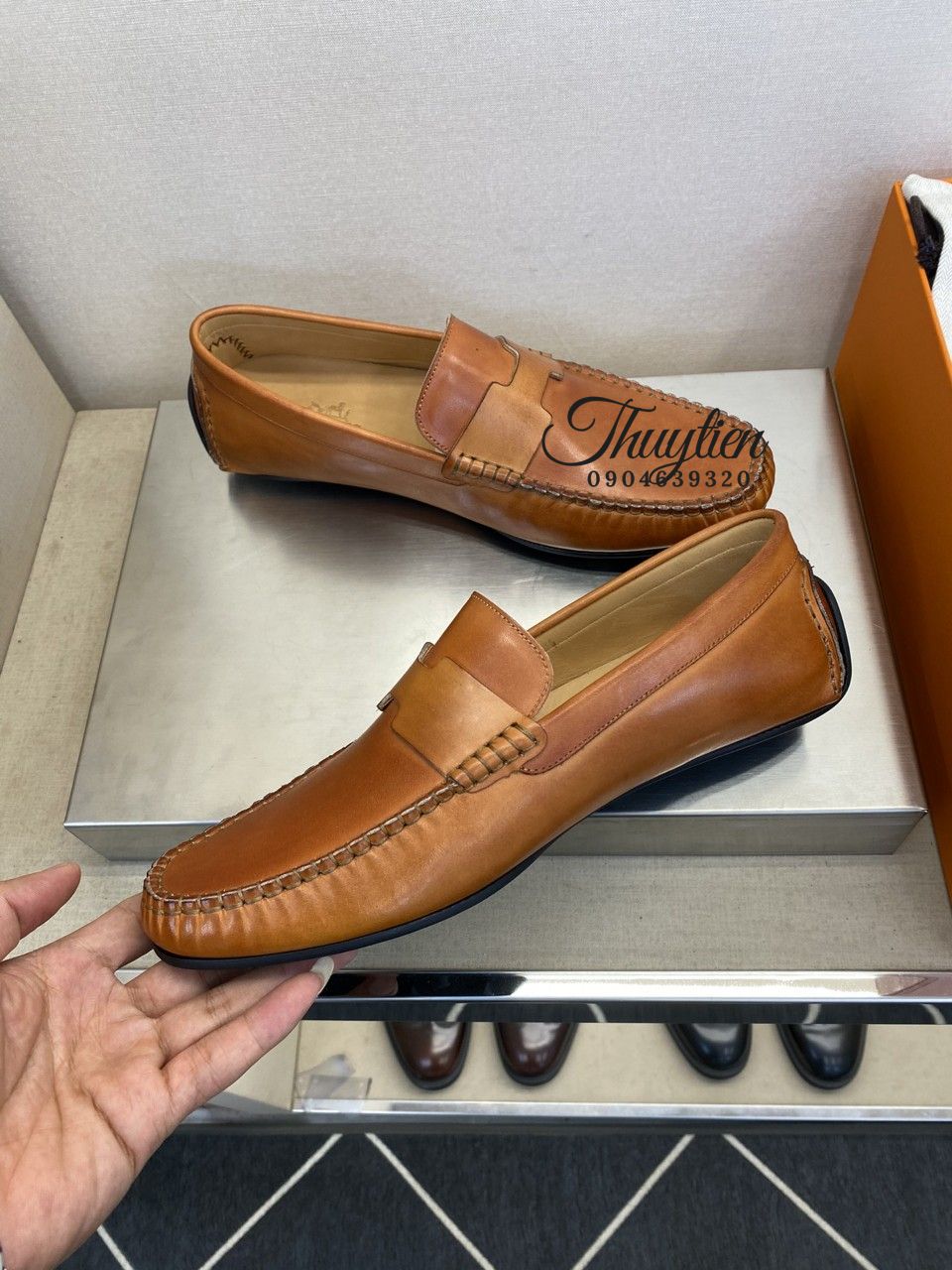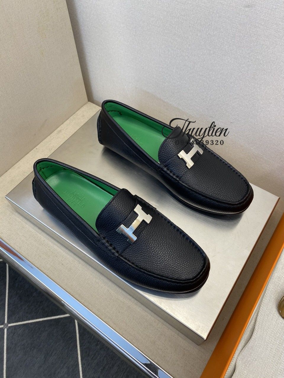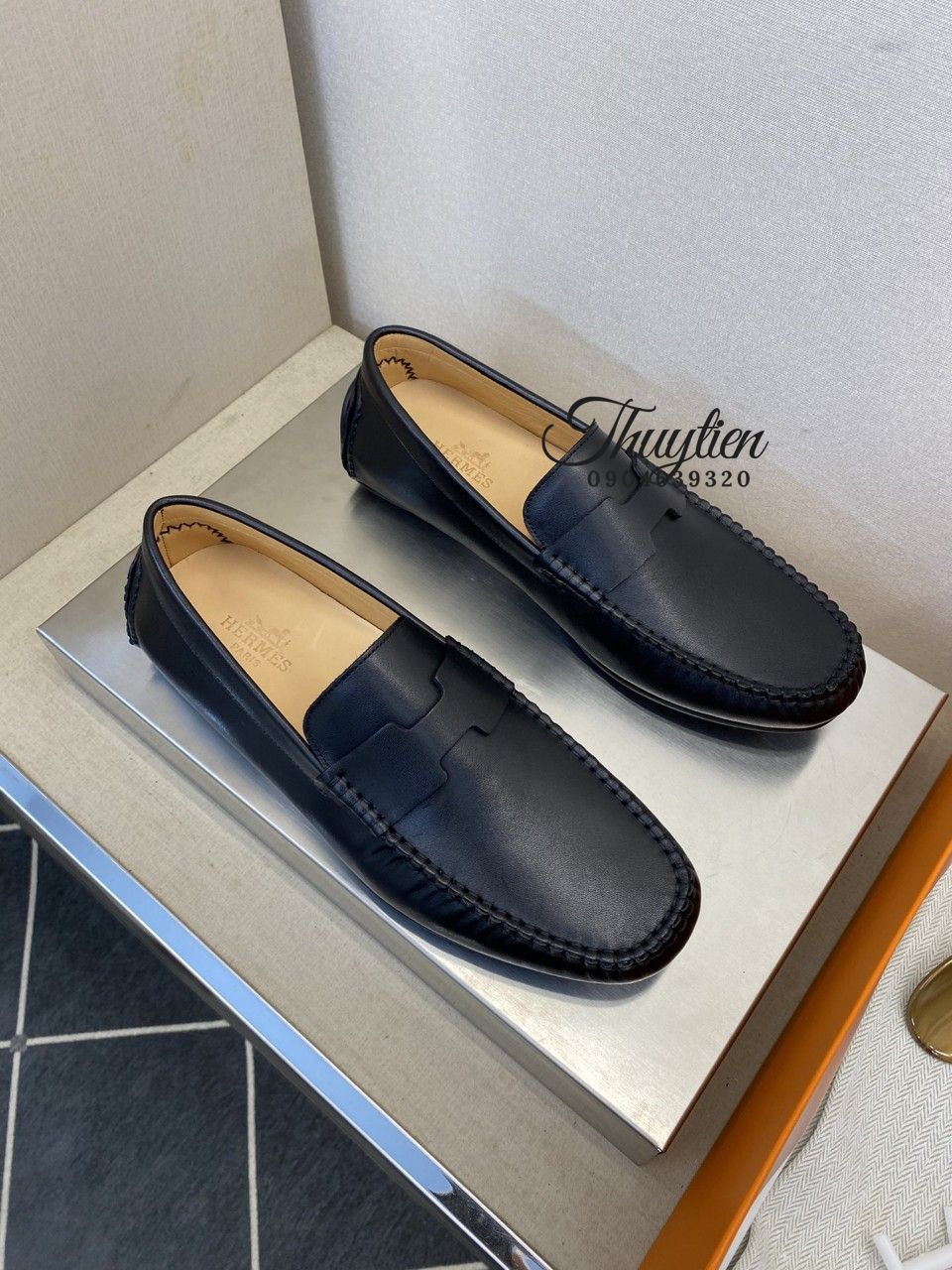 • Giày lười Hermes nam da thật