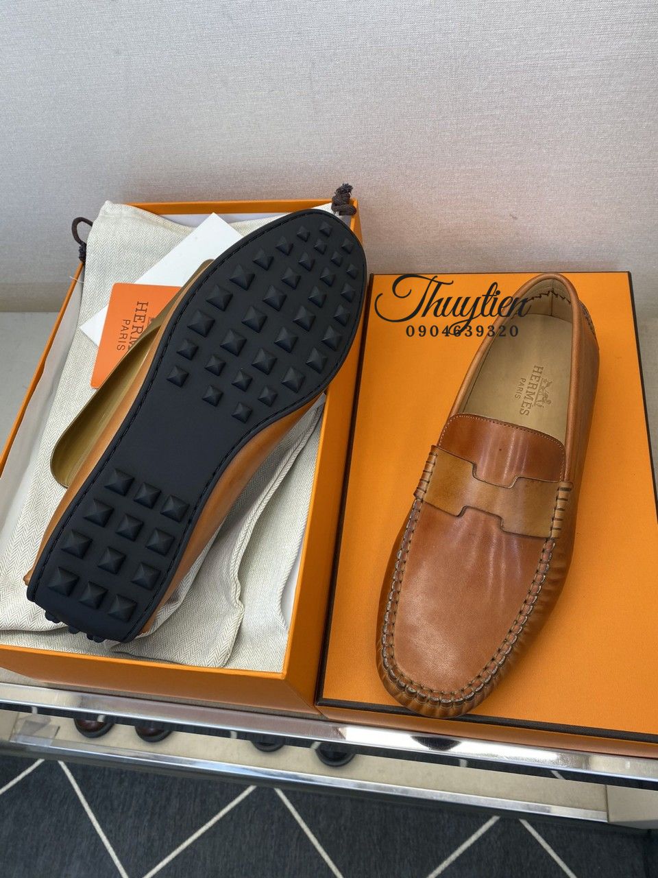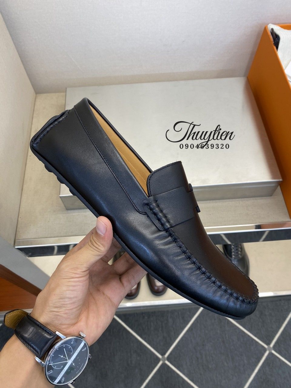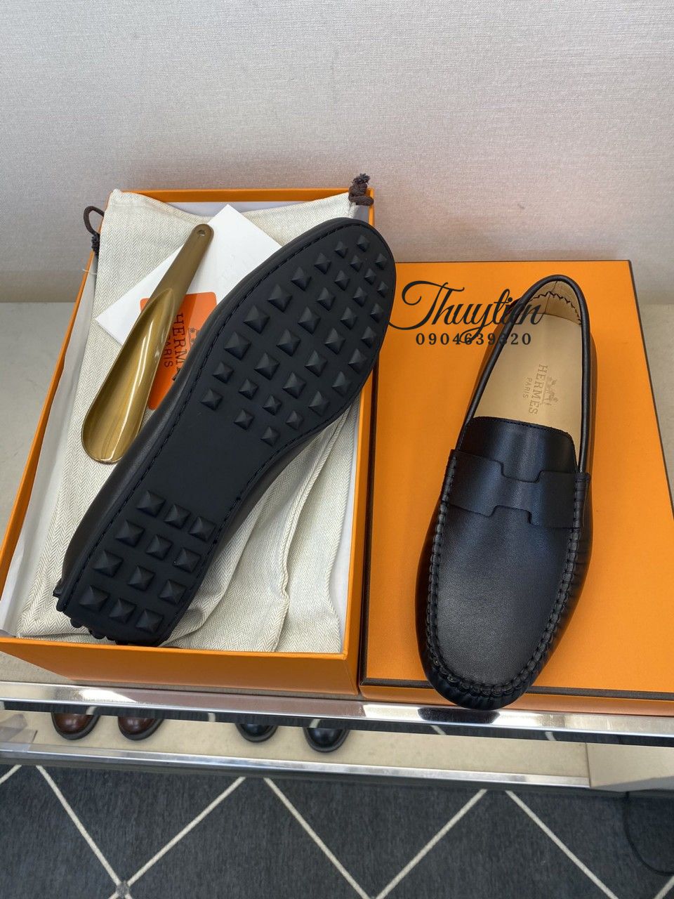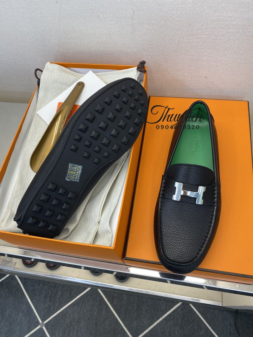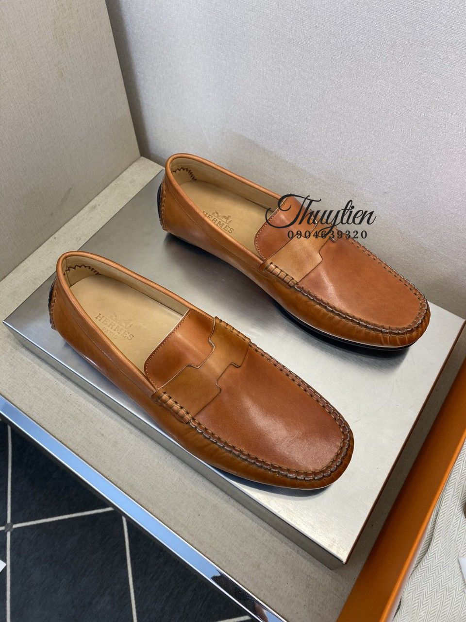 • Giày lười Hermes nam da thật
